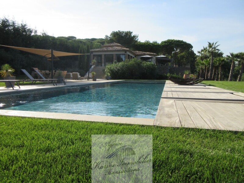 2 minutes from the village of Saint-Tropez and its beaches, on a plot of 4,269 m2, 14-room luxury villa of 470 m2 with an entrance, a large living / dining room with fireplace opening onto a large terrace with sea views, a large Gaggenau kitchen with pantry, 7 bedrooms each with its own bathroom or shower, an office, a laundry room, a wine cellar, Sonos sound system, video surveillance, gym and massage room. For the outdoors, there is a 20-meter heated swimming pool with its pool house, a boules court, a parking lot and a large garage, a helipad.