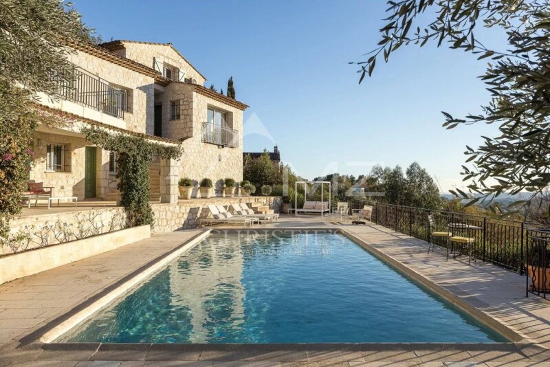Situated in a dominant position, with superb views over the old town of Vence, the village of Saint-Paul-de-Vence, the surrounding hills and the sea, this superb Provencal property from the 1980s is in excellent condition. Built on over 2,200 m2 of land signed from Jean Mus, and offering 6 bedrooms all en suite including 2 master bedrooms, this property benefits from the charm and calm sought-after in the area. Summer kitchen, wine cellar, carport, parking and saltwater swimming pool complete this not-to-be-missed offer.