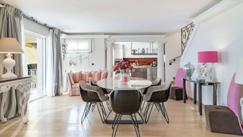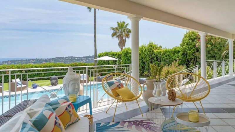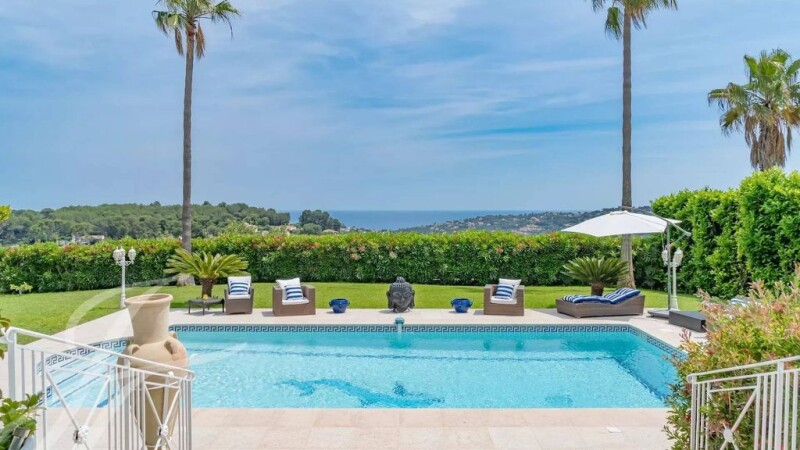 Located on the heights of Vallauris in a quiet, gated estate, this beautiful, fully-renovated villa offers top-quality amenities and an unobstructed view of the sea and rolling green hills. With a surface area of approx. 248 m², the villa is composed as follows: Garden level: large, bright 97 m2 living room, semi-open kitchen, guest toilet and laundry room. Level +1: bedroom, shower room with toilet, two en suite bedrooms including the master with large bathroom and dressing room. Level -1: 108 m2 garage, workshop, storage room, large technical and storage room. A swimming pool and numerous terraces complete this rare property for sale.