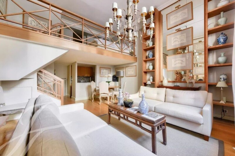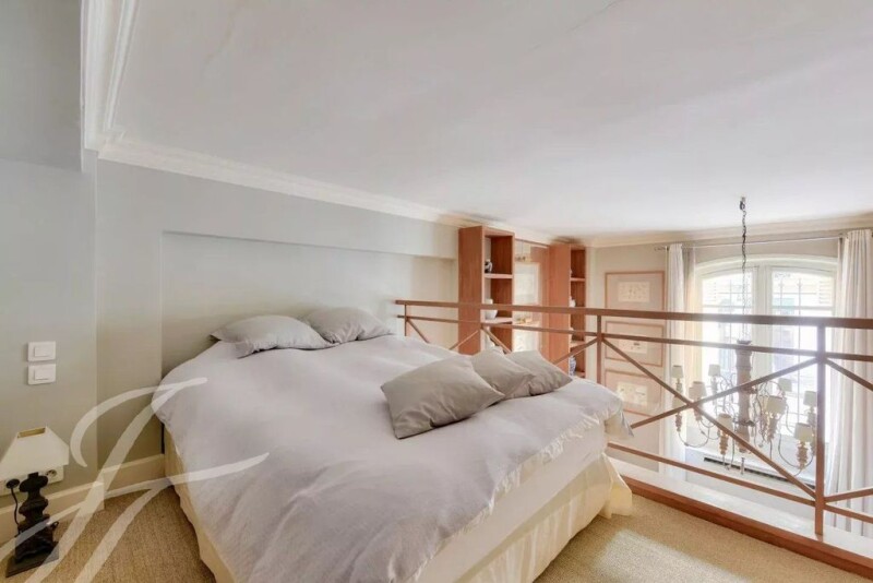 In a superb secure private mansion on Place des États-Unis, charming studio of 40.42 sqm (Carrez law) or 44 sqm (livable) on the ground floor facing the street, sold fully furnished and decorated. It includes : - a spacious living room with approximately 4 meters high ceilings, adorned with large illuminated bookshelves, - a semi-closed equipped kitchen opening onto the living room, - a staircase leading to a 13 sqm mezzanine including a bedroom with a beautiful shower room and toilet. Refined decoration for this ideally located apartment in the privileged and secure district of the 16th arrondissement between Avenue d'Iéna and the Golden Triangle of the 8th arrondissement. État des risques et pollution: réalisé (null).