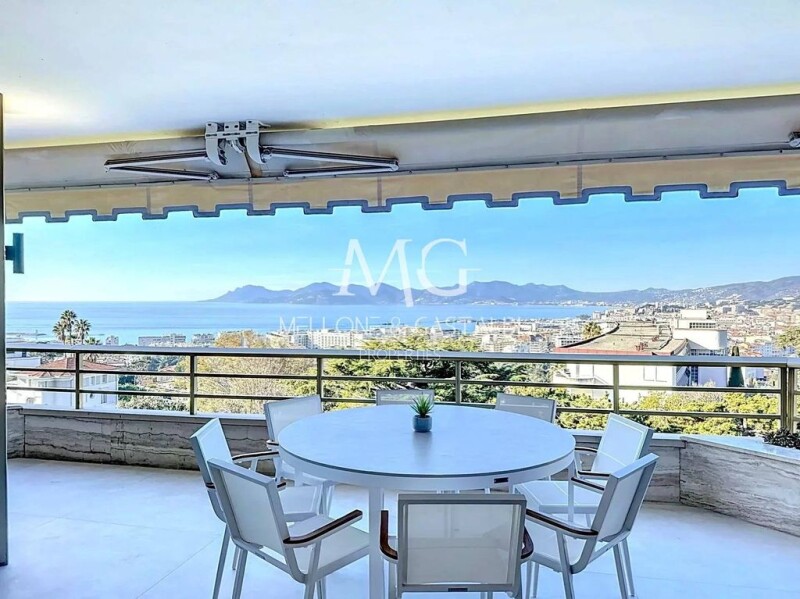 Located in the sought-after area of Basse Californie, within a closed and secure residence composed of a park and decorated with a swimming pool, magnificent 5-room apartment of 130m2 with terrace of 27m2 benefiting from an exceptional panoramic sea view at 180 degrees on the Lérins Islands and the city. It consists of a large living room bathed in light with independent kitchen and 4 ensuite bedrooms. Apartment fully renovated with quality materials. A closed garage and a cellar complete this exceptional property. To visit absolutely,.