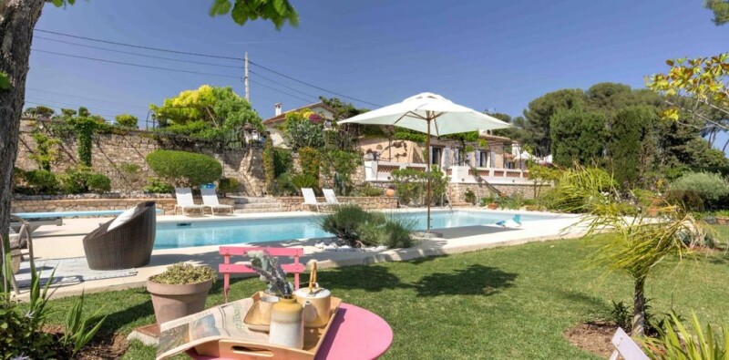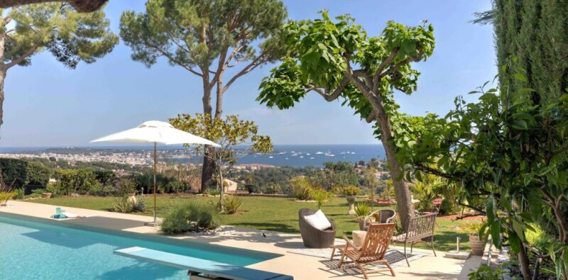 On the heights of Antibes, Magnificent modernized Provencal farmhouse dating from 1900, approximately 205 m², offering a panoramic view of the sea and Cap d'Antibes. Main house of approximately 150m² with cathedral living room and mezzanine, American kitchen and dining room. 3 bedrooms including one en suite with its shower room, another bathroom. Possibility of building 120m2 more on this landscaped park of approximately 2,745 m². Several terraces. 3 independent studios each with kitchenette and bathroom. A large swimming pool of 12m x 6m facing due south with exceptional views to the Garoupe lighthouse. Several parking spaces and a garage. A true haven of peace in the heart of lush nature.
