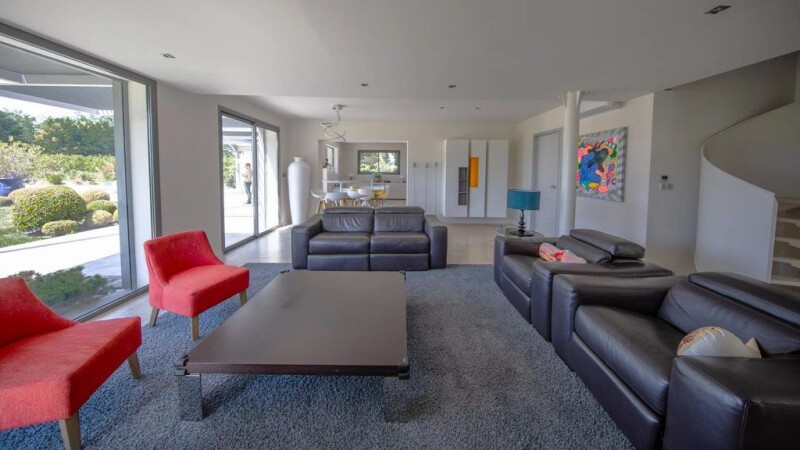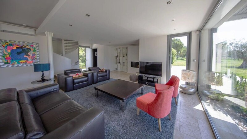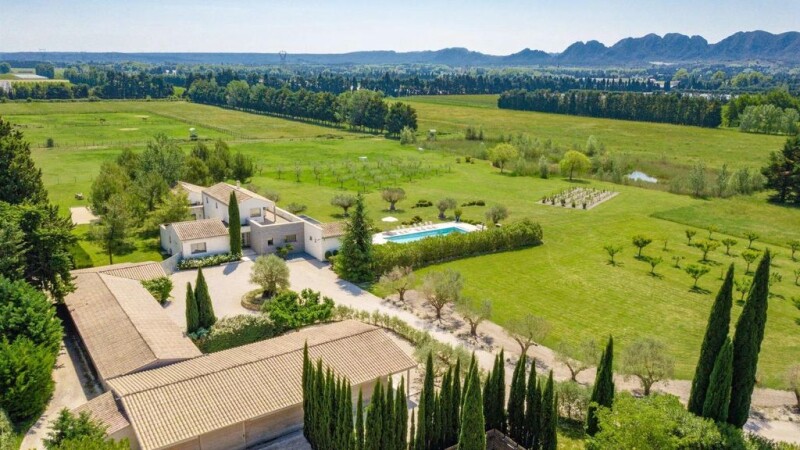 Benefitting from a spectacular and unobstructed view of the Alpilles, this extraordinary property, close to Saint Remy de Provence, is set within striking grounds which include a lake. This most original, contemporary home offers refined features and fittings, and the well-presented accommodation comprises a living room, kitchen and dining room, which all open out onto the garden, and 5 en-suite bedrooms. 4 of the bedroom suites are on the ground floor whilst the spacious master suite, on the first floor, offers a breath-taking view of the Alpilles and enjoys a large private terrace. The grounds stretch to approx. 3.5 hectares (8.5 acres) and include numerous outbuildings (a 3-car garage, carport, stables, caretaker's cottage and workshop) as well as a 15x5m heated swimming pool and pool house. It is the combination of the many features on offer, which include geothermal energy, underfloor heating, home automation and electric shutters as well as the prized location that give this unusual property the unique attributes that are sought by a demanding and aesthetic clientele. Complete tranquillity and privacy assured.