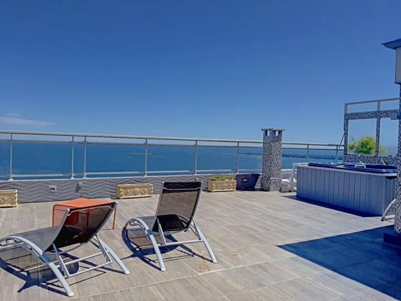 Sumptuous 6 Room Penthouse - Breathtaking Sea View in Cannes Californie Experience the height of luxury and exclusivity in Cannes, in the popular California district, with this exceptional 170m² penthouse, located on the top floor of a of the most renowned residences in the region. This unique property offers you an unrivaled living experience, with a breathtaking panoramic sea view from its immense 146m² terrace. Completely renovated in 2010, this apartment in excellent condition shines with its modern and luxurious design. It is spread over two levels, offering spacious and bright living spaces, including a double reception room, three suites with the possibility of a fourth, each with its own bathroom and dressing room. The separate kitchen is fully equipped, meeting the requirements of the most demanding gourmets. The majestic terrace invites you to moments of absolute relaxation with its jacuzzi and solarium, offering a breathtaking view of the bay of Cannes. The penthouse also stands out for its high-end services: 24-hour concierge, two tennis courts, swimming pool, a 12-hectare park, fitness room, and even a shuttle to make your travel easier. Including a large garage and a cellar, this penthouse represents an exceptional opportunity to acquire an exceptional property in one of the most coveted areas of Cannes. Characteristics: City: Cannes District: Californie Rooms: 6 (double living room reception, 3-4 en-suite bedrooms) Surface area: 170 m² Terrace: 146 m² Floor: Top floor / 10 Condition: Excellent condition Charges: €800/month Style: Modern luxury Year of construction: 1965 Year of renovation: 2010 Heating: Gas Central Collective Discover this jewel of the Côte d'Azur, a place where luxury, comfort and beauty meet for an unparalleled living experience.