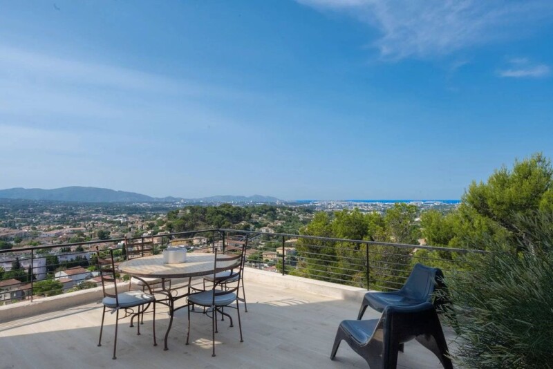 Exquisite Contemporary Villa with Panoramic Sea Views – Plan-de-Cuques Located just 20 minutes from Marseille, this magnificent contemporary villa sits atop the scenic heights of Plan-de-Cuques, offering breathtaking panoramic views over the Mediterranean, Marseille harbor, and surrounding islands. A Harmonious Blend of Elegance & Comfort - Spacious 2,000 m2 landscaped plot with a swimming pool, perfect for relaxation - Expansive living area bathed in natural light, with floor-to-ceiling windows framing the stunning sea views - Separate, fully equipped high-end kitchen, designed for effortless entertaining - Four generous bedrooms on the lower level, including a luxurious master suite with dressing room - Independent apartment, ideal for guests or private use (bedroom 5) - Multiple terraces, seamlessly blending indoor and outdoor living High-End Features & Modern Technology - Alarm system for enhanced security - Air conditioning throughout the property - Double glazing for comfort and energy efficiency - Electric gate ensuring privacy and easy access - Sliding windows maximizing natural light and openness - Electric roller shutters for convenience and security - Videophone for secure visitor access - Home automation system for seamless control of lighting, security, and temperature A Unique Lifestyle Opportunity This villa is a sanctuary of peace and refinement, offering the perfect balance between privacy and proximity to the vibrant city of Marseille. Whether enjoying the stunning sunsets, lounging by the pool, or hosting gatherings in the spacious living areas, this home is designed for those who appreciate luxury, space, and an extraordinary setting. A rare gem in an exceptional location – schedule your private viewing today.