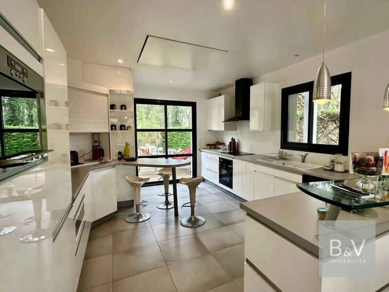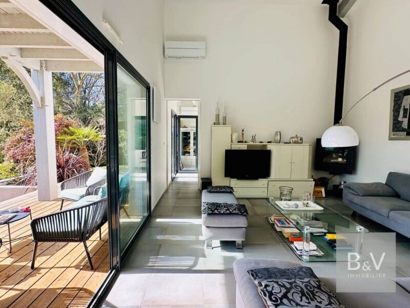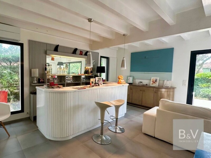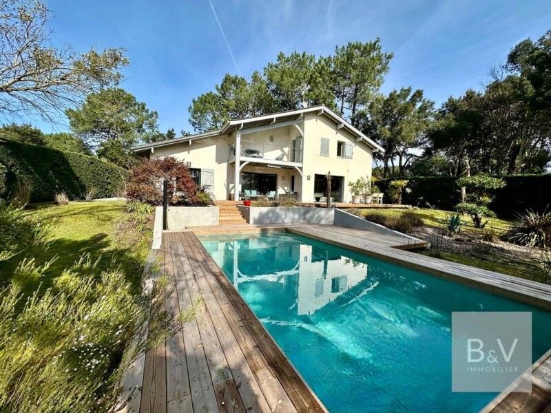 Just a stone's throw from the ocean and the Pinsolle golf course, at the gateway to Vieux-Boucau-les-Bains, discover this superb 237 m² house, completely renovated in 2015, offering a refined and serene living environment, lulled by the gentle sound of the ocean. From the moment you enter, you'll be charmed by the spacious, double-height living room, bathed in light thanks to large double-glazed aluminum bay windows. The open, fully-equipped kitchen combines aesthetics and functionality. On the first floor, a master suite with private shower room and storage space, an office and a pantry with direct access to the garage complete this harmonious space. Upstairs, you'll find three bedrooms, a bathroom with toilet, and a mezzanine offering a multi-purpose space (games room, reading corner, study...). This home features state-of-the-art equipment: - Reversible air conditioning. - Electric roller shutters. - Automatic gate for security and convenience. An exterior designed for well-being! The carefully tended landscaped garden is enhanced by elegant outdoor lighting. The main attraction? A magnificent swimming pool, ideal for enjoying fine weather, bordered by a spacious wooden terrace, perfect for moments of conviviality. A privileged location, within easy reach of the beach, shops and cycle paths. This house combines modern design, comfort and quality of life - a rare opportunity to be seized without delay! Contact us now for more information and to arrange a viewing. Price : 1 219 000 euros ECD : C État des risques et pollution: réalisé (null).
