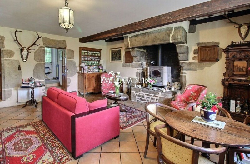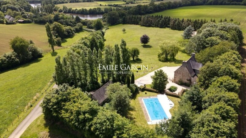Located on the border of Brittany and Normandy, 11km from Mayenne, 29 km from Bagnoles de l'Orne and 48 km from Laval, this countryside property is peacefully sheltered from view. A place of rest in the heart of nature, it is located on over 4 hectares of land with two outbuildings. The property is only 5 minutes from the local amenities. The main house dates back to the 15th century and is built in schist and granite rubble.The ground floor comprises a living room with fireplace, a lounge, a small kitchen and a toilet. Upstairs, accessible by a wooden spiral staircase in the tower, there is a landing serving two bedrooms and a bathroom. On the second floor, a second landing serving as an office leads to two bedrooms and a bathroom. Away from the accommodation, an old outbuilding has been completely restored and houses a beautiful living room with cathedral ceiling and fireplace, a veranda, a kitchen and two bedrooms. Upstairs, there is a mezzanine and an attic bedroom and bathroom. At the entrance to the property, you will find a large garage and a carport. Meadows, two small ponds, woodland and a river border the property. There is a swimming pool (lining in need of replacement) on the terrace boasting a breathtaking view of the Mayenne.