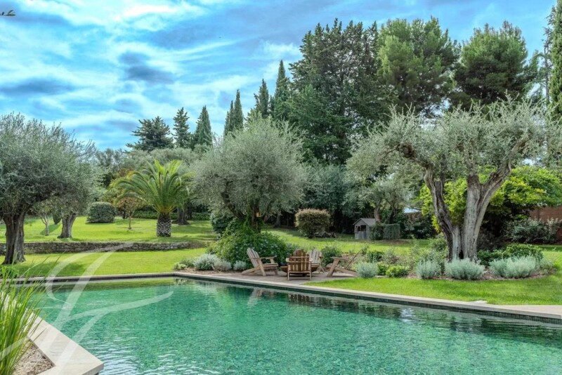This uncluttered property with Mediterranean accents is located in the heart of a closed and confidential estate, close to the old village of Mougins. Completely renovated, it offers a refined yet warm atmosphere. The six en suite bedrooms, all facing the garden, benefit from generous volumes bathed in natural light. The superb 4,000 m² flat park features splendid vegetation, including some 30 olive trees, a variety of Mediterranean species and a sumptuous, fully-equipped 55 m2 pool house. Perfectly equipped, the property offers a sophisticated home automation system, a high-performance alarm system, a gym, an office, a pétanque court and a garage, ensuring optimal comfort and uncompromising security. This villa is an invitation to gentle living, where every detail has been thought of to offer a unique and peaceful living environment.