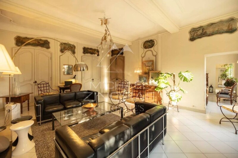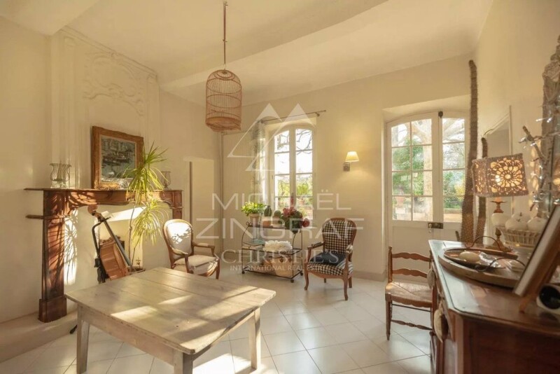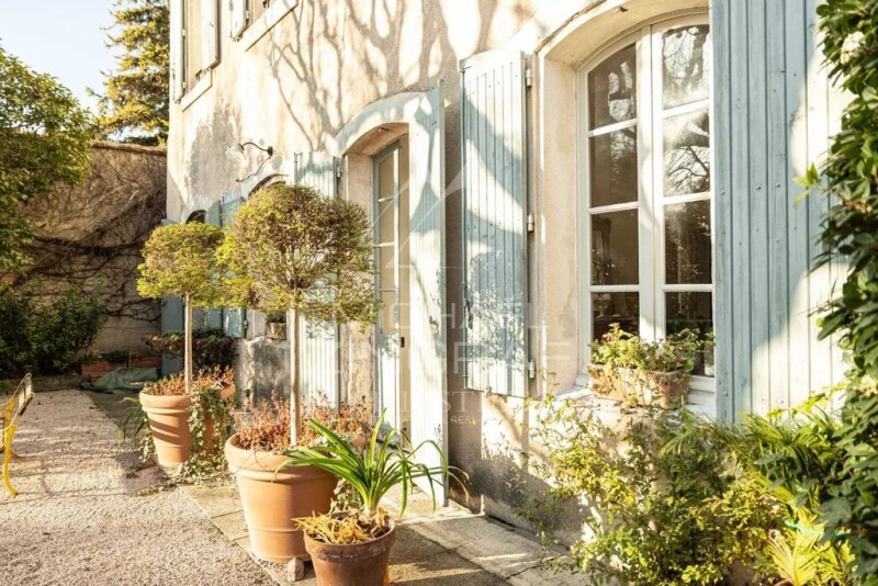 Exceptional property in l'Isle-sur-Sorgue! A charming 18th-century manor house on the banks of the Sorgue river, a large shaded terrace opening onto a quiet, country-style garden, an ideal location 5 minutes' walk from the old town center, shops and schools, and a 10-minute stroll from the most beautiful natural site in Isle-sur-Sorgue. It's enough to seduce all those who dream of living in a small Provencal town, between Avignon and the Luberon, in the Monts du Vaucluse... The building, with a total surface area of approx. 500m2 and landscaped grounds of approx. 1554 m2, comprises a main house, two independent apartments and attic space for conversion. The main body of this two-storey house (approx. 200m2), with its elegant beige facade gilded by the sun, features bay windows and tall, small-paned windows protected by solid wood shutters. It retains the classic architecture of a fine bourgeois house, with its succession of rooms, never huge, whose size lends each space a cosy atmosphere... Next to the closed garage, the high-ceilinged entrance hall features a dressing area, laundry room and toilet, and opens onto a small, charming living room that provides access to the immense shaded terrace, a haven of coolness and conviviality, overlooking the verdant garden planted with beautiful, typically Provencal trees: plane, lime, hackberry and a hundred-year-old oak. A small swimming pool is available for cooling off in summer, as the property is not overlooked. The first small reception room leads on the left to a dining room and a small fitted kitchen with access to the terrace, and on the right to a spacious, comfortable living room where you can relax in an armchair by the fireplace and admire the frescoes adorning the top of each wall. Concealed behind the living room's molded double doors is a large room that could serve as an office, playroom or new kitchen.... Upstairs, 3 spacious bedrooms, bathed in light and with views over the garden, invite you to relax in peace and quiet. Two bathrooms, one with an old-fashioned free-standing bathtub, the other with a shower. A large 20m2 dressing room could be a 4th bedroom en suite... In the rear part of the building, the two apartments to renovate (30m2 and 50m2 on 2 levels) and an additional 130m2 of potential conversion space in the attic, offer numerous possibilities for enlarging or rethinking spaces. The proximity of the center of Isle sur la Sorgue, famous for its antique shops and charming canals that give it the name of “Venice of Provence”, provides the perfect balance between tranquility and liveliness. Accessibility by train from l'Isle sur la Sorgue station to Avignon TGV station is highly appreciated by those who need to travel regularly within France for their professional activities. This house, with its cachet and history, will appeal to those in search of authenticity, conviviality and the gentle Provencal art of living.