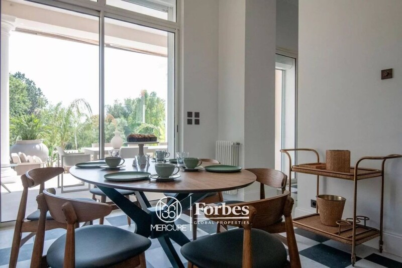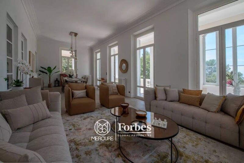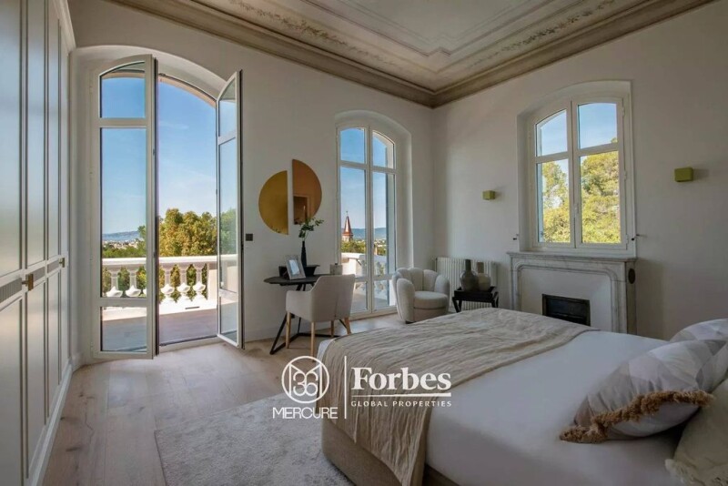 Villa Bel Respiro, overlooking the town and set in the foothills of the Estérel in the prestigious Valescure district of Saint-Raphaël, is a masterpiece of Belle Époque style. Covering 430 sqm, it was completely renovated in 2024, combining modernity and luxury. Built in 1893 by architect Pierre Aublé, its historic Palladian architecture has been enhanced by top-quality contemporary features. The villa, with its majestic façade, features a large gallery supported by Tuscan pillars and a belvedere offering exceptional views. It is set on a hill overlooking the sea, with a refined, natural interior design. The space is spread over four levels, including a superb marble vestibule, a large living room, a dining room decorated with beautiful period fireplaces, an ultra-equipped kitchen with fireplace, and a study with fireplace. The villa also offers five spacious suites, including a master bedroom with private terrace, three bedrooms with fireplaces, and a bedroom converted into a children's dormitory. The materials used are of the highest quality: light and black marble, fruitwood inlays, elegant mouldings, and authentic features such as wooden doors and arched windows have been preserved. The belvedere offers panoramic views of the Mediterranean Sea and the Massif de l'Esterel. The basement houses a relaxation area with games room, cinema room, wine cellar, laundry room and utility room. A 60 sqm guest house completes the property, which has been fully renovated and furnished. The 6,623 sqm grounds are a showcase of magnificent Mediterranean species, with majestic cork oaks, towering cedars and slender cypresses, offering an infinity pool, several terraces, an outdoor fitness area and a ‘guinguette’ with petanque court. An additional 2,205 sqm of land is also available, allowing for a variety of features such as a spa or tennis court. Located less than ten minutes from the beaches and golf courses, including the prestigious Valescure Old Course Golf & Tennis Club, this villa embodies elegance, comfort and refinement, in one of the most sought-after locations on the Côte d'Azur. Copyright Charles Kent Selling price: €5,700,000 Fees payable by the vendor Energy class : E Climate class: E Technical diagnostics dated November 2021 and March 2023: in progress following complete renovation of the deux buildings. Information on the risks to which this property is exposed is available on the Géorisques website: www.georisques.gouv.fr État des risques et pollution: réalisé (2023-03-03).