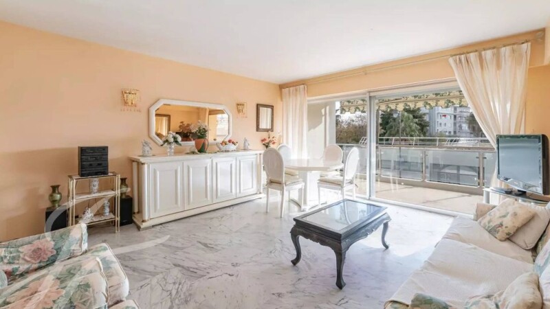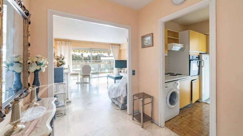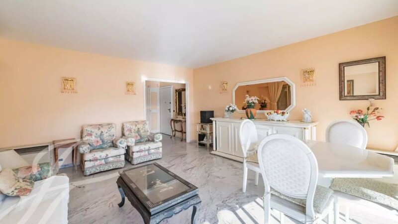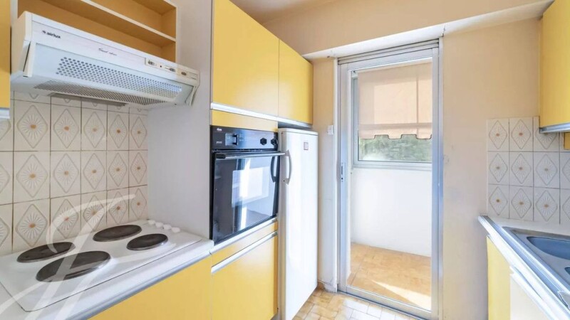 Lovely two-bedroom apartment to renovate, located on the 1st floor of a luxury Palm Beach residence with unobstructed views. It comprises an entrance hall with closet, hallway with closet, living room opening onto terrace, kitchen opening onto balcony, bedroom opening onto balcony, bathroom and separate WC. A cellar and parking space complete this property.