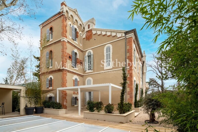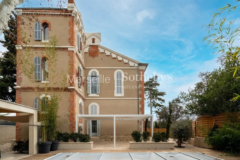 For sale in Cabot, Marseille 9th, a classified remarkable bastide fully renovated, approximately 400 sqm, set on a 1,190 sqm plot. Located in a residential neighborhood, it currently consists of two units that can be combined into one large estate. The first part of the bastide features, on the first floor, a fitted and equipped kitchen opening onto a spacious living area with access to a stunning tempered glass conservatory that provides exceptional brightness, as well as a laundry room. On the second floor, you will find two bedrooms, one of which has a balcony, and a bathroom. The third floor offers a third bedroom with a private shower room and dressing area, creating an ideal private space. This section of the property also boasts a charming outdoor area with a 7m x 4m concrete swimming pool with a liner. The second part of the bastide includes, on the first floor, a living room opening onto the garden, a dining room, a fitted and equipped kitchen, a laundry room, and an office. The three upper floors are dedicated to the sleeping area: the second floor hosts four bedrooms, including two master suites, two shower rooms, a bathroom, and a balcony. The third floor offers an additional bedroom, while the fourth floor reveals two large rooms that can be converted into a home cinema, gym, or additional bedrooms as desired. Within the tower, four distinct spaces offer the possibility of creating offices, dressing rooms, or multipurpose rooms. This unique residence combines the charm of the old with modern comforts. Its layout allows for either residential or professional use. With its architecture, generous spaces, and high-end features, this property is a rare find on the market.