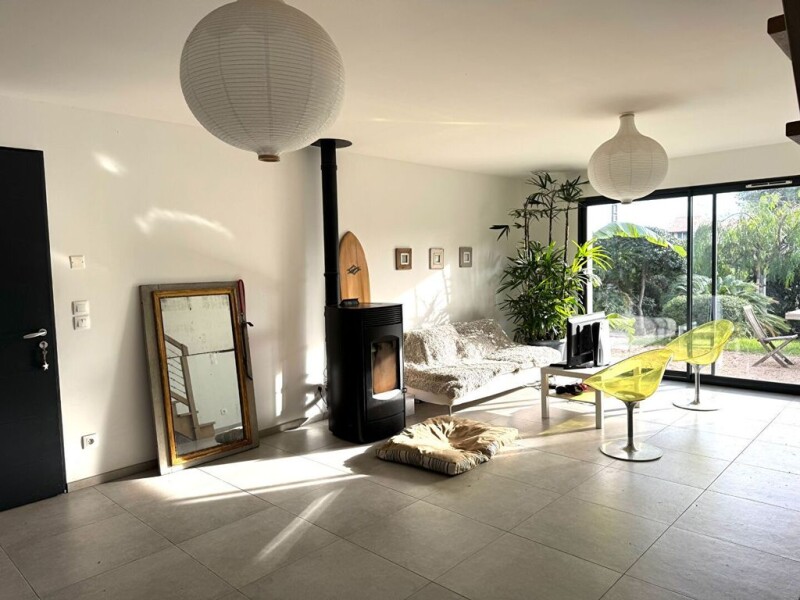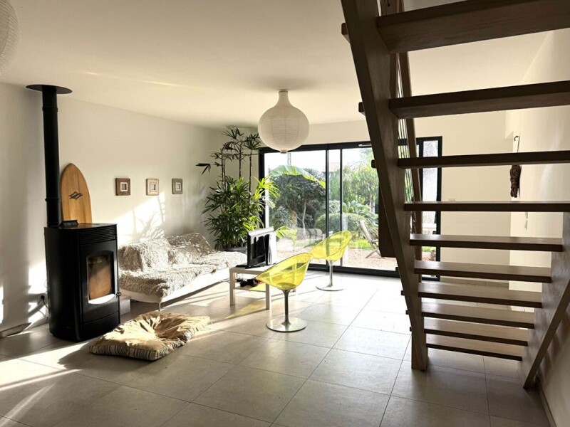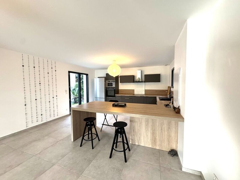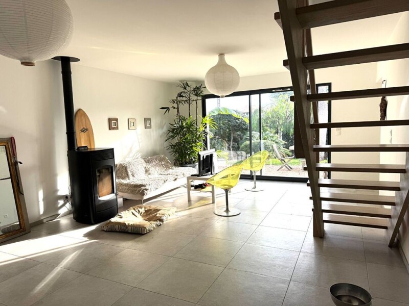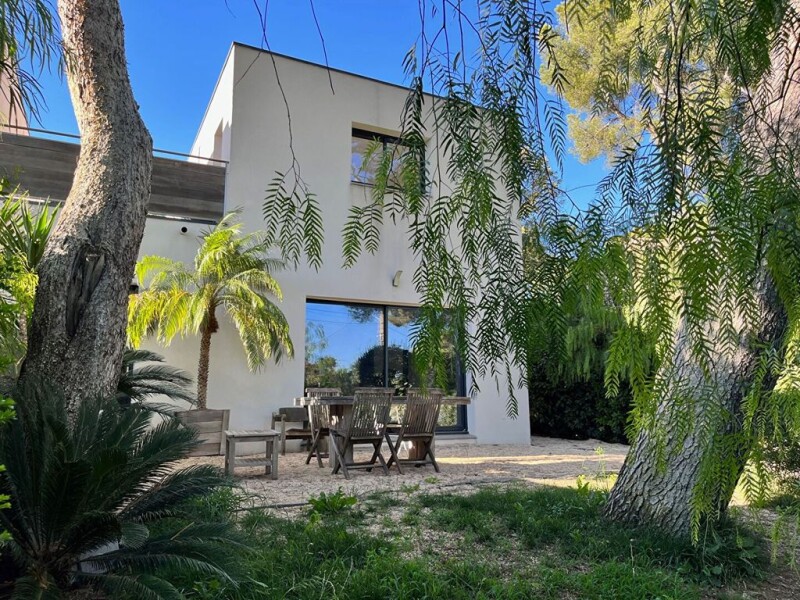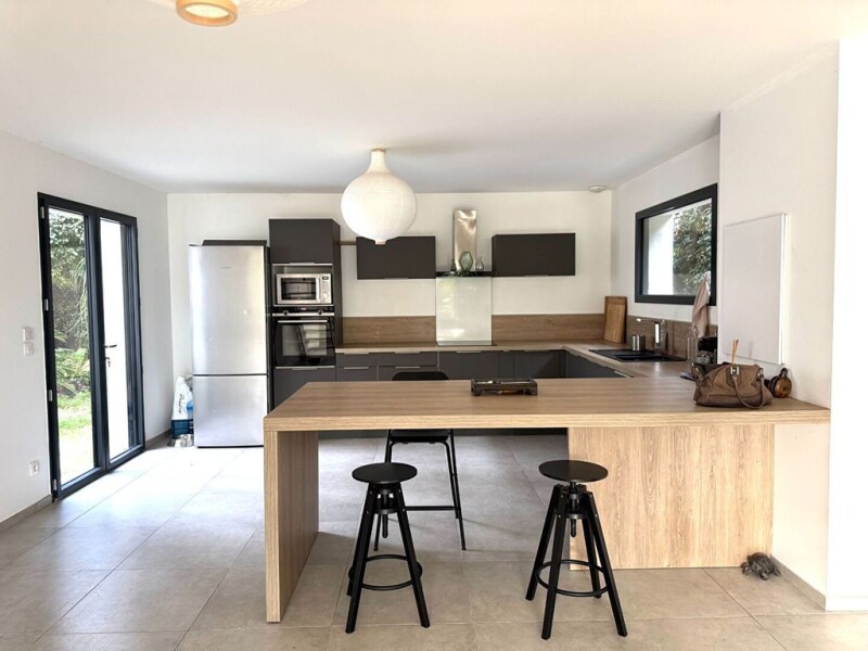 Rare for sale in the town centre of the pretty commune of Sausset les pins, this is a recent contemporary house of 115m2 on a plot of 500m2. Accommodation comprising, on the ground floor, an entrance hall leading to a large living room of 53m2 with pellet stove bathed in light and its fitted and equipped kitchen, a beautiful ground floor bedroom with access to the garden and a shower room with wc. Upstairs you will find a 15m2 bedroom and a second 17m2 bedroom, a bathroom, a separate toilet and a large terrace. Landscaped grounds with terrace and parking spaces.