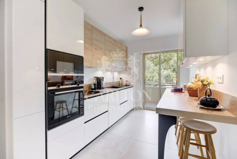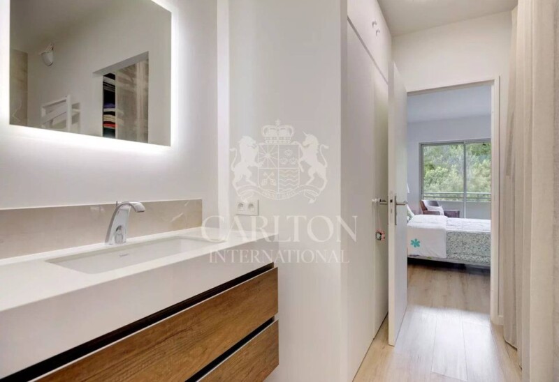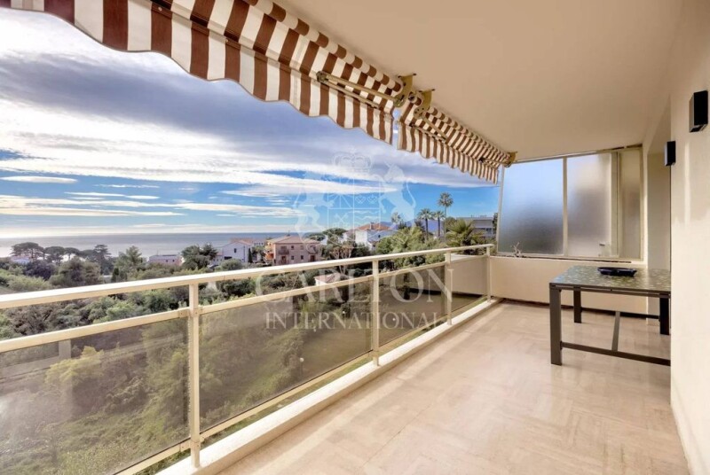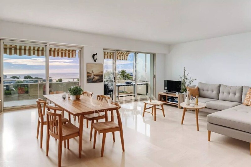 Nestled within a prestigious residence boasting breathtaking sea views, beautifully landscaped gardens, concierge service, and a swimming pool, this stunning renovated 2 bedroom apartment is situated on the third and top floor of this exclusive complex. The apartment features a spacious living room of approximately 40 m², opening onto a large 14 m² south-facing terrace, bathed in sunlight and offering panoramic sea views. The fully equipped independent kitchen, complemented by a 10 m² north-facing terrace with no overlooking neighbors, is perfect for cooking enthusiasts. The layout includes two elegant bedrooms: a master suite with a walk-in closet and en-suite bathroom/toilet, and a second bedroom with an adjoining shower room and separate toilet. Two secure underground parking spaces and a storage room complete this exceptional property. Some photos of the living room have been retouched for easy visual projection. REF 00666 Average energy expenses in 2021 range between €990 and €1,390 per year. No ongoing legal proceedings in the residence. Agency fees are to be paid by the seller. Information on the risks to which this property is exposed is available on the Géorisques website: État des risques et pollution: réalisé (2024-10-21).
