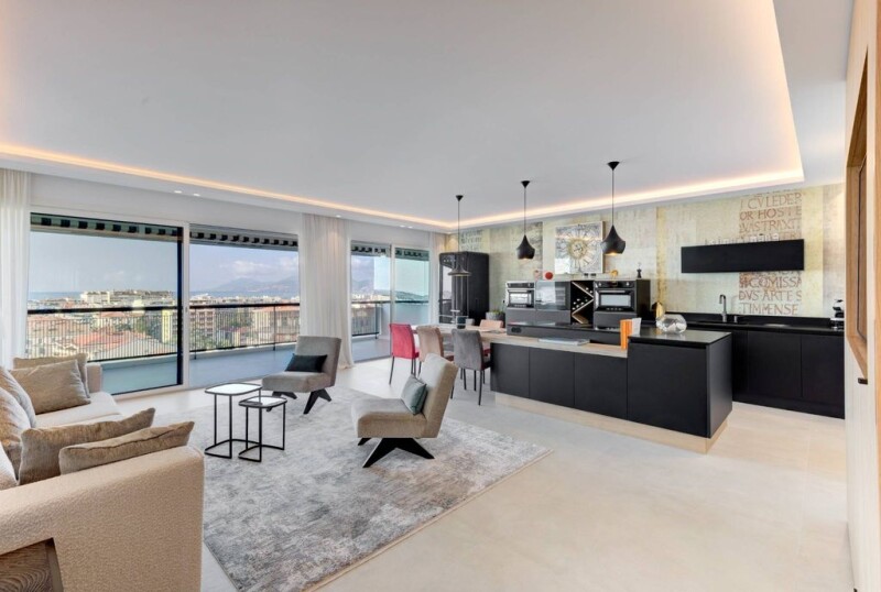Sole Agent ! Located in a sought-after area of the city center, this 94 m² apartment offers you a magical view of the Lérins islands and the Estérel. Located on the top floor, this crossing apartment offers: a living room and a kitchen opening onto a 15 m² terrace with a sea view. Two en-suite bedrooms, a laundry room and multiple dressing rooms complete this very recently renovated property with quality services and home automation. Its south-facing terrace, a true haven of peace, invites you to fully enjoy the mild Mediterranean days. A convertible roof terrace of 87 m² benefits from an exceptional 360° view of the Mediterranean and the hills. Decorated with taste and refinement, this apartment will seduce you with its modern and refined style. The distribution of rooms is optimal, offering unrivaled living comfort. A closed garage and a cellar complete this property. Possibility of adding a service bedroom of 12 m². This luxurious apartment offers quality services and is offered to you by Côte d'Azur Sotheby's International Realty, your luxury real estate expert in Cannes.