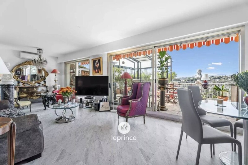 Nice Rimiez - Cap de Croix: On the top floor of a high-end building, this corner 2/3 room apartment spans 904 sq ft, with direct elevator access privatized for the floor. A circular terrace of 1,378 sq ft offers panoramic views of the city and the hills of Nice, enabling enjoyment of the sunlight throughout the day due to its triple exposure. Two verandas further complement this superb space. Large entryway, double living room and dining area of 355 sq ft extended by a 290 sq ft veranda, a true living space for all year round, surrounded by a first 785 sq ft terrace with panoramic views of the hills. A separate, dine-in kitchen, fitted and equipped, has been recently renovated and also provides access to the outdoors. Guest toilet with washbasin completes the daytime area of the apartment. A large 215 sq ft master suite with dressing room, bathroom, and toilet opens onto the second 215 sq ft terrace which includes a veranda serving as a laundry room. Highly luminous due to its triple exposure, the layout is easily modifiable, offering numerous possibilities for customization. A cellar and a garage complete this apartment located in a neighborhood known for its gentle lifestyle and tranquility, although close to amenities. Full presentation dossier and immersive virtual tour available upon request. Seller pays the agent fees. Information on the risks this property is exposed to is available on the Géorisques website: georisques.gouv.fr" État des risques et pollution: réalisé (2024-02-29).