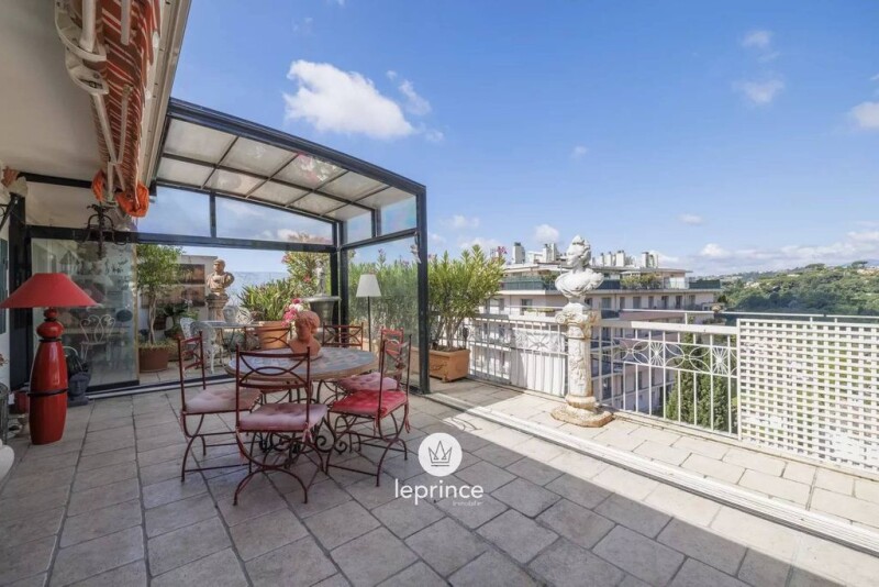 Nice Cimiez / Cap de Croix: On the top floor of a high-end building, this corner 2/3 room apartment spans 904 sq ft, with direct elevator access privatized for the floor. A circular terrace of 1,378 sq ft offers panoramic views of the city and the hills of Nice, enabling enjoyment of the sunlight throughout the day due to its triple exposure. Two verandas further complement this superb space. Large entryway, double living room and dining area of 355 sq ft extended by a 290 sq ft veranda, a true living space for all year round, surrounded by a first 785 sq ft terrace with panoramic views of the hills. A separate, dine-in kitchen, fitted and equipped, has been recently renovated and also provides access to the outdoors. Guest toilet with washbasin completes the daytime area of the apartment. A large 215 sq ft master suite with dressing room, bathroom, and toilet opens onto the second 215 sq ft terrace which includes a veranda serving as a laundry room. Highly luminous due to its triple exposure, the layout is easily modifiable, offering numerous possibilities for customization. A cellar and a garage complete this apartment located in a neighborhood known for its gentle lifestyle and tranquility, although close to amenities. Full presentation dossier and immersive virtual tour available upon request. Seller pays the agent fees. Information on the risks this property is exposed to is available on the Géorisques website: georisques.gouv.fr État des risques et pollution: réalisé (2024-02-29).