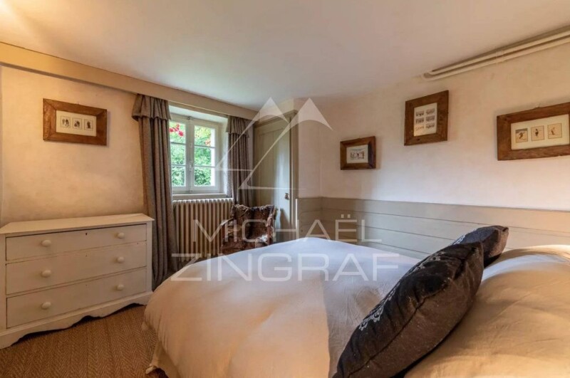 Michaël Zingraf Real Estate Megève is pleased to offer you this charming chalet nestling in the heart of the village, in a peaceful setting with breathtaking panoramic views of the village and surrounding mountains. Elegantly decorated with a harmonious blend of wood, slate and warm colours, it comprises four bedrooms, including a children's bedroom, three bathrooms, a living-dining room with open fireplace and a separate kitchen. The living room and terrace are perfectly south-facing, with no overlooking. In addition, planning permission has been granted for the conversion of the attic space, which will provide a pleasant increase in volume.