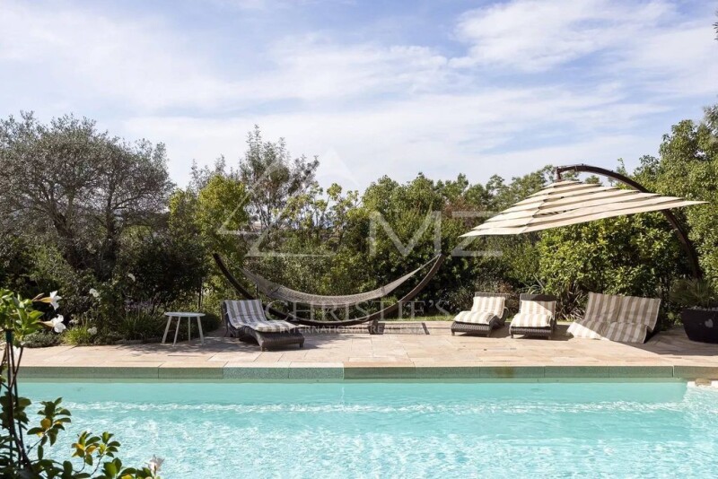 Situated in a gated estate just fifteen minutes drive from Cannes city centre, this elegant contemporary-style villa set in wooded grounds offers a peaceful living environment and superb facilities. On the garden level, facing the swimming pool, you will enjoy a large, bright cathedral-style living room, a semi-open-plan kitchen with pantry and store room, as well as a utility room and WC. Upstairs, the landing leads to a master suite with bathroom, WC and dressing room, two bedrooms with fitted wardrobes and a shower room with WC. The fenced garden with trees also features an outbuilding comprising a beautiful bedroom with en suite shower room/WC, as well as ample parking space.