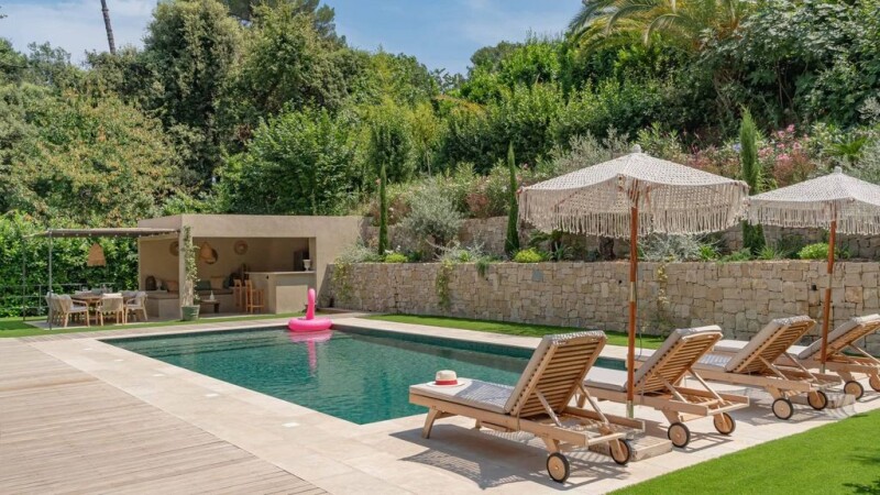 Nestled in the heart of a sought-after Mougins estate, this superb villa, entirely renovated with quality materials, stands on a 1306 m2 plot offering absolute tranquility. The villa features a beautiful entrance hall, a large, bright, south-facing living room, an open-plan kitchen, four bedrooms, including a magnificent single-storey master suite with en suite shower room and dressing room. The bright, spacious living areas open onto a landscaped garden and magnificent swimming pool, inviting you to relax. A summer kitchen, ideal for alfresco dining, and a garage complete the property. Located in a quiet, secluded setting, close to the Mougins School and Cannes-Mougins golf course, this villa offers an exceptional living environment.