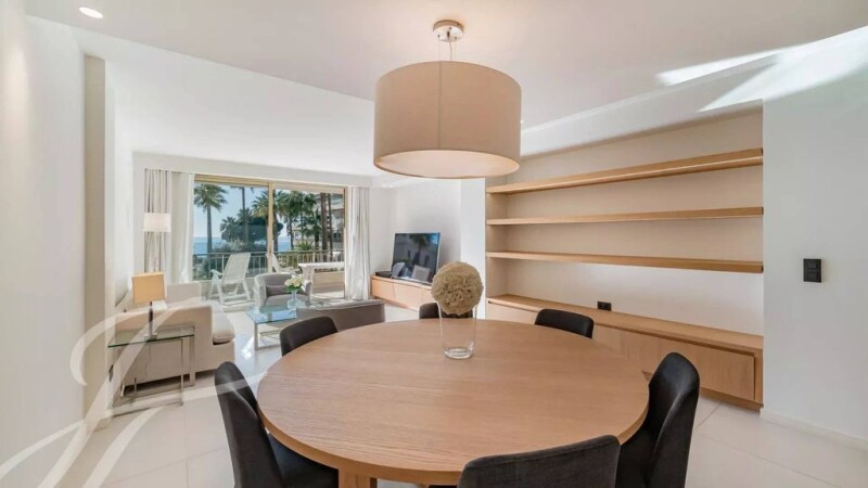 In a luxury residence on the Croisette, this attractive 4-room apartment offers a beautiful view of the park and the sea. With a surface area of approx. 124.16 m², it comprises an entrance hall, living room with open-plan fitted kitchen, master bedroom en suite with bathroom and dressing room, all opening onto a terrace of approx. 16 m², guest toilet, two further bedrooms en suite.