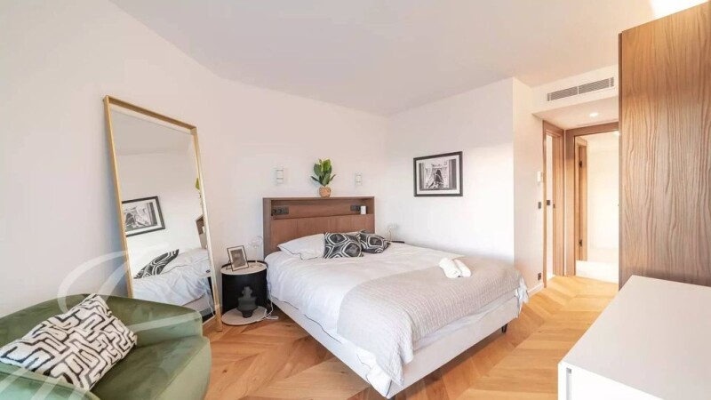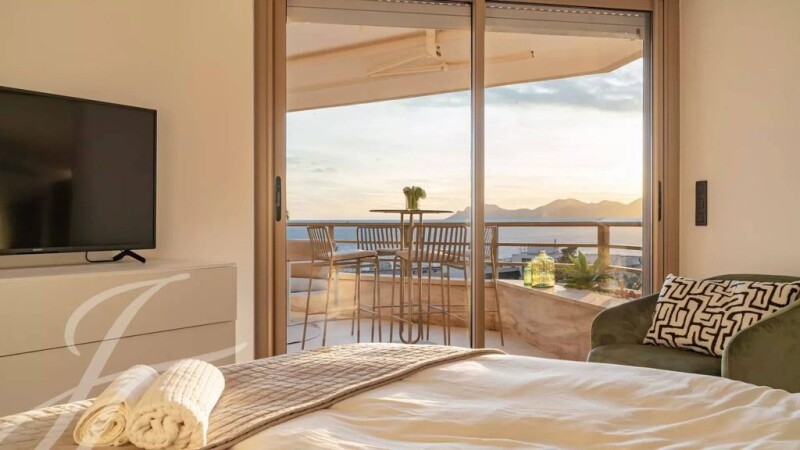Outstanding 100 sq.m 4 room flat located on a high floor of a sought-after residence in Basse Californie with independent 1-bedroom flat. It benefits from a panoramic view over the bay of Cannes and the Lérins islands. The flat is composed of a large living room with open kitchen opening onto the south-west facing terrace, 3 bedrooms en suite. Large terrace of 27 sq.m offering a superb sea view. A parking space and a cellar complete this beautiful flat entirely renovated with luxurious fittings. A guest flat of 40 sqm on the ground-floor is also included , comprising a living room with open-plan kitchen and a bedroom with en suite bathroom. This flat has a loggia with garden and sea views. The residence has a concierge service and an indoor swimming pool.