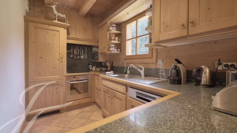 Located in Rochebrune in a quiet area, chalet built in 2002 with a total surface area of approx. 153m2 on a 708m2 comprising : Garden level: entrance with storage, fitted and equipped kitchen opening onto dining room, living room with open fireplace opening onto terrace with access to wooded garden, bedroom, bathroom with shower and WC. First floor: two bedrooms including one with balcony, bathroom with bathtub and mezzanine / sleeping area. First floor: bedroom with shower room, laundry room, cellar, ski/utility room and 1-car garage.