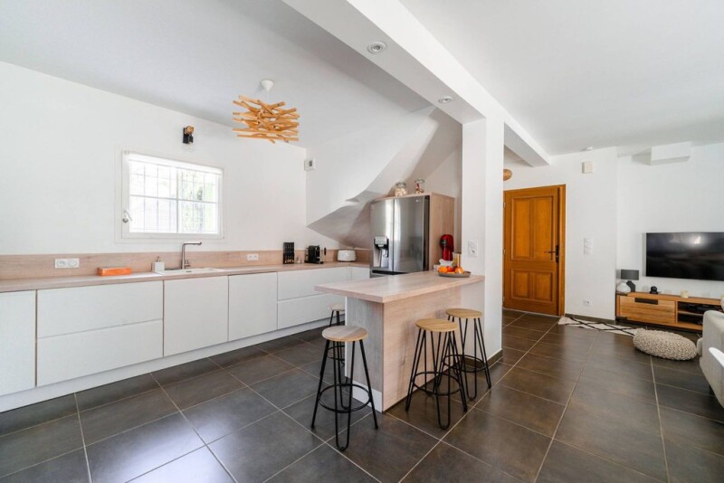 Eguilles - walking distance to schools & school buses - Rare - located in a quiet, residential area close to all amenities, not overlooked. Rare - located in a quiet, residential area close to all amenities, not overlooked, not on a housing estate - bright and pleasant one-storey house - Type 5 - built on 341 M2 of enclosed land with garden and saltwater pool - meticulous appointments -- secure environment - spacious - Configured as follows: Ground floor - entrance onto large living room with open-plan fitted kitchen, lounge and dining area, access to terrace and fully enclosed, south-facing garden with recent saltwater pool - - storeroom - study/bedroom - large storeroom/laundry room First floor: 3 bedrooms - bathroom - 1 separate WC - - Reversible air-conditioning Reversible air-conditioning - Immediately habitable - spacious living area - no load.