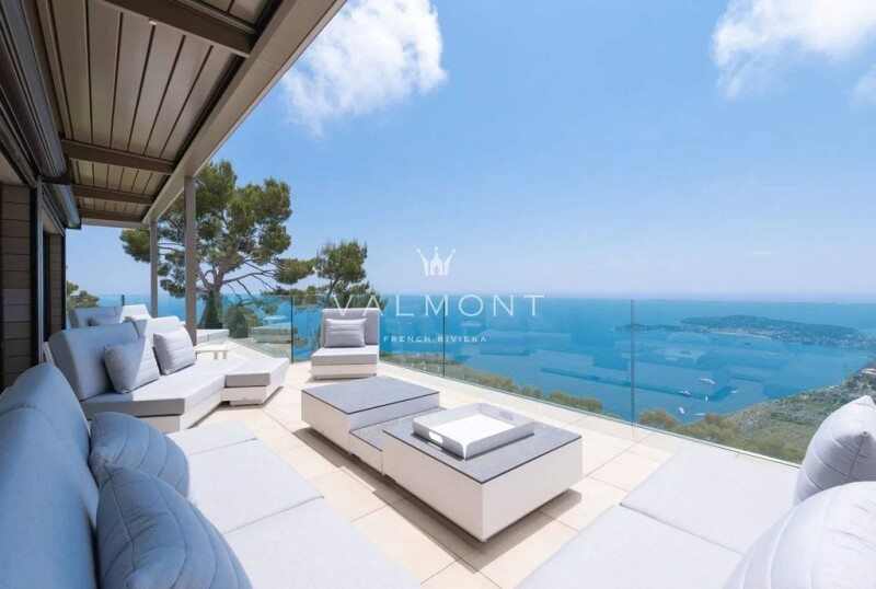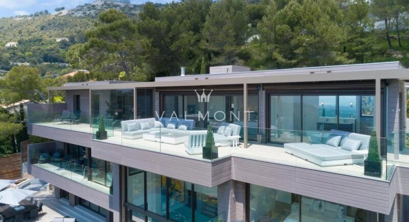 EZE: New contemporary villa situated on the heights of Eze (accessible through middle corniche), offering breathtaking panorama. Interior surface of approximately 473 sqm and large and flat, child friendly, plot of land. Long infinity swimming pool offering views of the sea, Saint Jean Cap Ferrat and the medieval village of Eze. Spacious and luminous double reception area with fire place offering magnificent view of the sea and the village through high bay windows. Fully equipped open-plan kitchen, dining room, 6 bedrooms with their dressings and bathrooms, an independent caretaker apartment. High quality furniture and finishings. Gym. Jacuzzi. Automatic gate. Parking space. The information about the risks to which this property is exposed is available on the Géorisques website: georisques.gouv.fr.