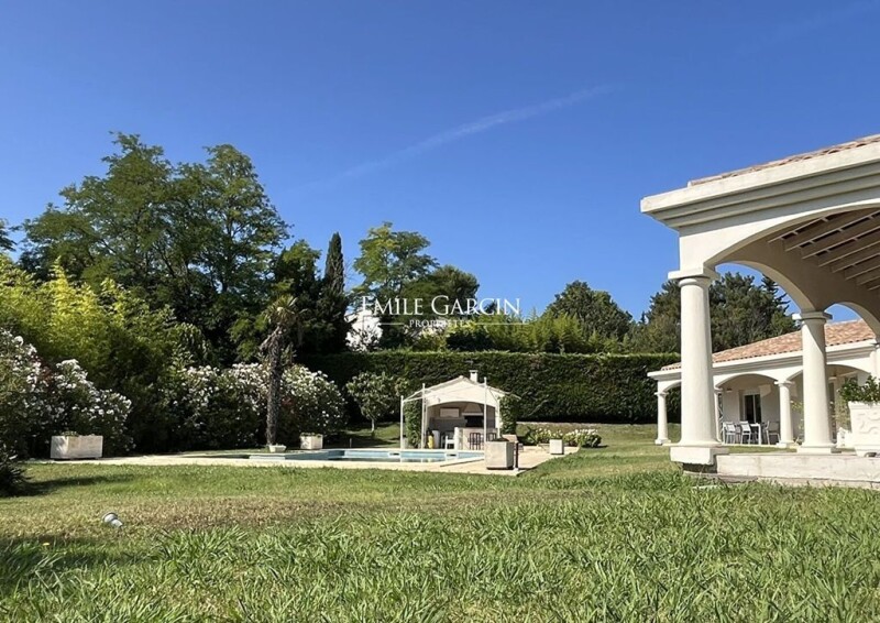Located in the Aix countryside, just 10 minutes from the centre of Aix-en-Provence, this property presents 215 sq.m of living area and a landscaped garden of 2,659 sq.m. Peacefully nestling in a much sought-after corner of the Aix countryside, the house was designed by an architect and built a little over 20 years ago in a deliberately contemporary spirit. Flooded by natural light, the interior comprises a large living/dining room of 76 sq.m, an open kitchen and 4 bedrooms. Additional facilities include a beautiful traditional swimming pool and a covered BBQ area. Peaceful, light, and step-free! Not to be missed.