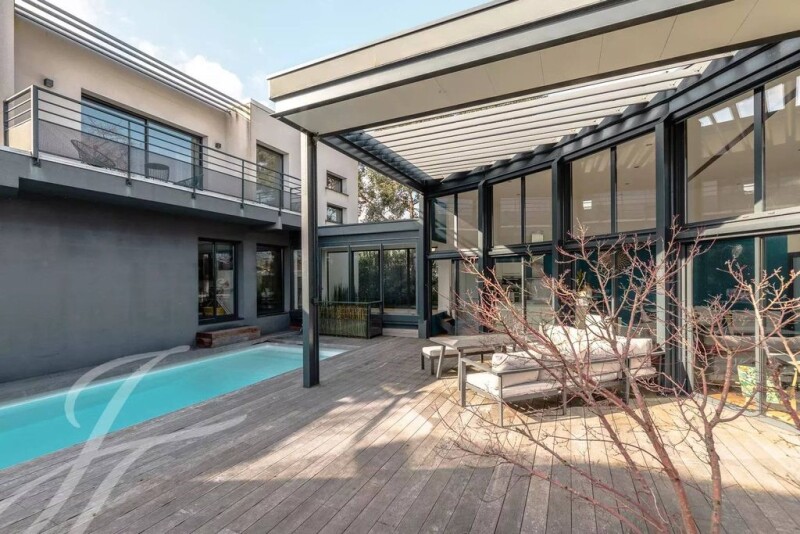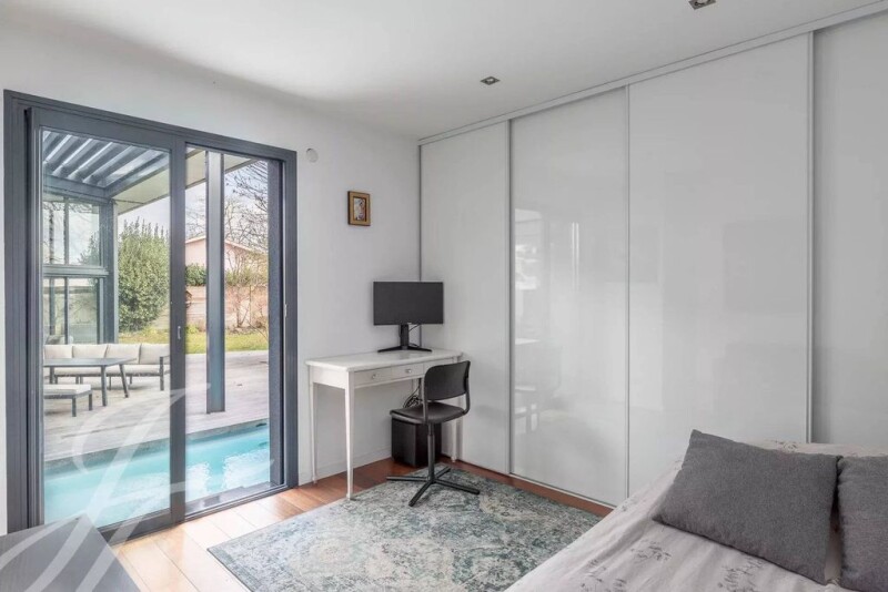 John Taylor is proud to present this splendid architect-designed house with a total surface area of 175 m² (140 m² of living space), ideally located close to all amenities on a beautifully landscaped plot. Boasting a prime location, this residence stands out for its large openings and exceptional ceiling height in the living area, creating a bright and spacious atmosphere. On the ground floor, you will find an entrance hall leading through a gallery to a vast 50 m² living area, featuring an open-plan kitchen that extends onto the west-facing terrace, pool, and garden. A bedroom, a pantry, a storage room, and a separate toilet complete this level. Upstairs, the house offers a master suite with a walk-in closet, en-suite shower room, and a west-facing terrace, along with two additional bedrooms, a bathroom, and a separate toilet. Designed by an architect, this home has been built with carefully selected materials, ensuring both quality and aesthetics. Outside, several parking spaces are available at the front, including one in the garage and another discreetly tucked behind an electric gate. At the back, a swimming pool surrounded by a spacious terrace invites you to enjoy relaxing moments. This house is a true invitation to comfortable and modern living.
