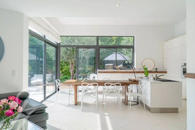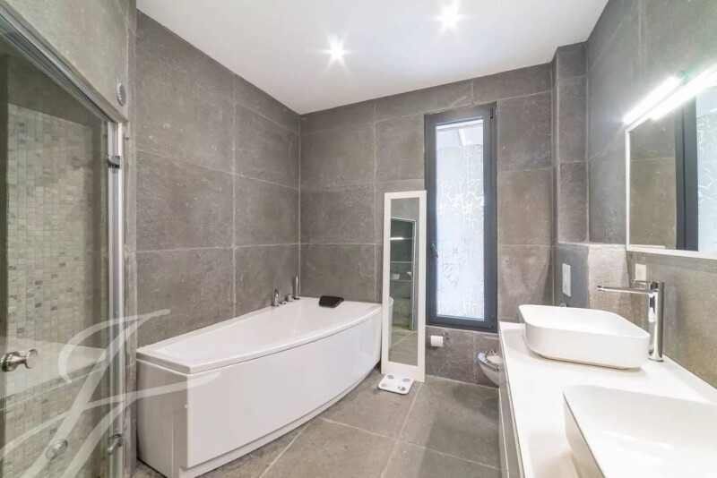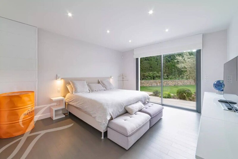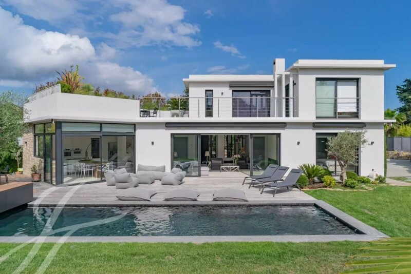 Ideally located in the vicinity of Mougins School and all amenities, on a private and gated estate, a new-built villa of contemporary style amidst flat and tastefully landscaped grounds of 1,232 sq.m with heated swimming pool. The ground floor encompasses an entrance hall with guest toilet, a sitting room with gas fireplace and a dining room, a high-end fitted kitchen, a linen room, a master bedroom with its en-suite dressing room and bathroom. The upper level features 2 bedrooms - each with en-suite shower room. A car port complete this quality property. A must see !.