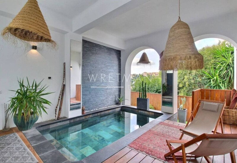 Discover this superb town house on three levels. A true haven of peace in the immediate vicinity of Cannes. Located in a very quiet residential area, just a 10-minute walk from La Croisette, beaches, restaurants and shops, it perfectly combines tranquility and city life. Completely renovated with high-quality materials and a modern design in natural colors, this home boasts impressive ceiling heights. Bathed in natural light, the interior spaces are in perfect harmony with the exterior terraces. On the first floor, you'll find a charming entrance hall, two bedrooms, including a spacious master suite with dressing room and shower room, and a second bathroom. The second floor is spacious, with a fully equipped kitchen, a scullery, an elegant dining room and a vast living room opening onto a large terrace with barbecue, perfect for entertaining. The basement features a third bedroom with en-suite shower room, a lovely west-facing terrace giving access to a relaxation area with swimming pool, in a Bali atmosphere, with no vis-à-vis and a totally unobstructed view; a fully-equipped studio with separate entrance, kitchen and shower room, with access to a large terrace. A private garage, fitted out with a mezzanine offering additional storage space. A must-see, this exceptional house in Cannes will charm you and make your dreams come true.