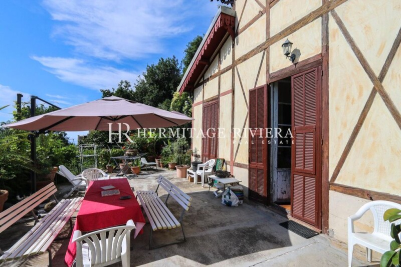 Menton Annonciade, beautiful property of more than 4 hectares, in a dominant position facing east, it enjoys a panoramic view of the surrounding mountains and the sea. This property which was inspired by the luxuriance of nature, hillside to the top and beautifully planted with various species including oaks, chestnut trees, centuries-old olive trees, conifers, fruit trees (orange, lemon ...) and exotic make it a unique place. Served by a private road has two buildings of approximately 70m2 and 80m2 to renovate on a plot of 1053m2 with direct access, a house in poor condition of approximately 60m2 on a plot of 1695m2 below as well as a ruin (non habitable) to restore on a plot of 2128m2 both accessible by a pedestrian path. Several other plots border the last two houses. Several other plots border the last two houses. On the northern part of the property is a forest with a total area of around 23000m2. A source whose purity has been verified and several parking spaces complete this rare property. Possibility to sell the ruin and 60m2 house separately. Land in a natural zone non-constructible.