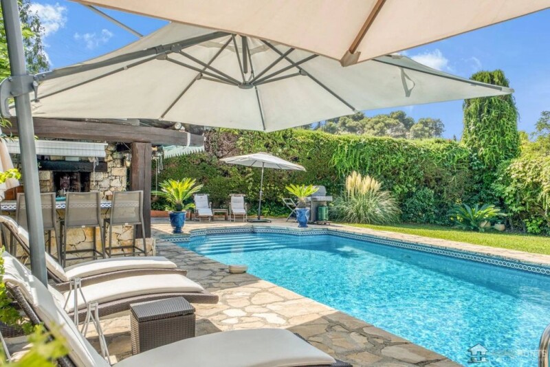 This charming 240 m2 Provencal villa is ideally located in a gated estate in a very residential area of Mougins. Accommodaiton comprises a beautiful living room with fireplace, 5 bedrooms including a master bedroom on the ground floor, an office and a utility room. Lovely flat gardens of approx. 1700 m2 adorned with swimming pool and pool house, BBQ in the charming covered dining area delightful grounds are fully enclosed and planted.