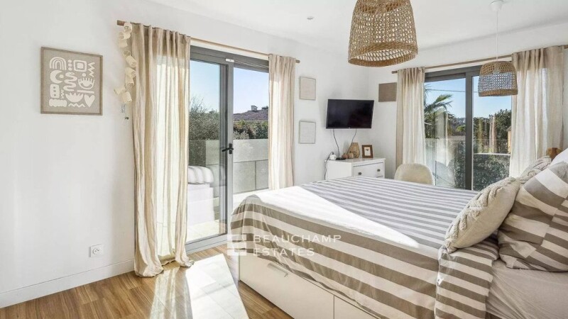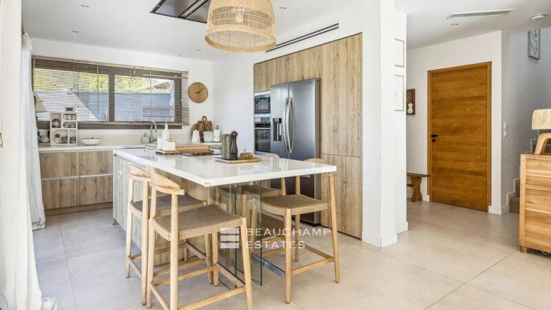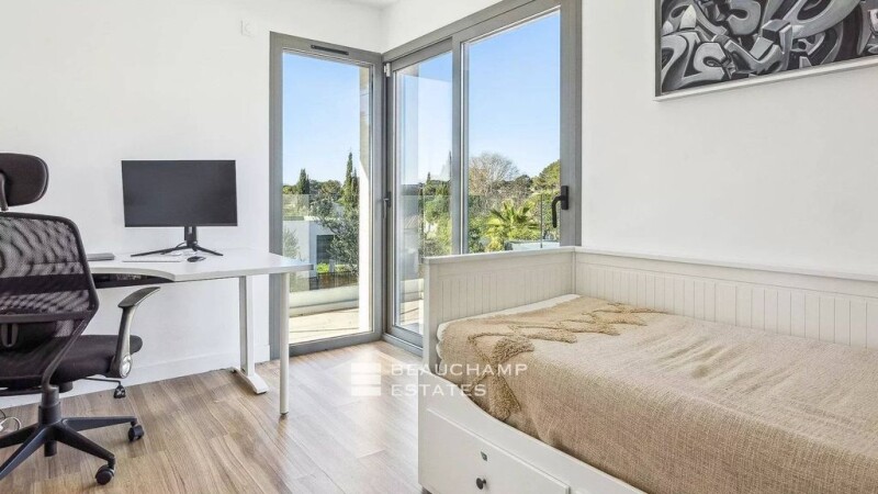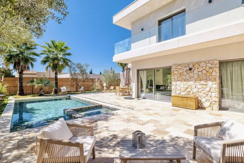 Co Exclusivity.` Located in the residential area of the Grande Bastide, superb contemporary villa of approx. 164 sqm on a plot of approx. 980 sqm, comprising an entrance hall, a fitted kitchen opening onto the living room, a ground-floor bedroom with shower room, separate toilet, utility/laundry room. First floor: master bedroom with shower room, WC and dressing room, three bedrooms, bathroom, separate WC. Attractive terrace of approx. 40 sqm. A 98 sqm basement with conversion potential. A parking area of approx. 100 sqm with easy access for 4 cars. An attractive Bali-tiled swimming pool with built-in jacuzzi completes this exceptional property. A 17 sqm outbuilding could be used as a workshop, office or garage. Energy class : B (78kw) - Climat class : A (2kg) / estimated annual costs for standard use : between 1,047€ and 1,417€ (ref year 2023). Information on the risk to which this property is exposed is available on the Geohazards website : www.georisques.gouv.fr.