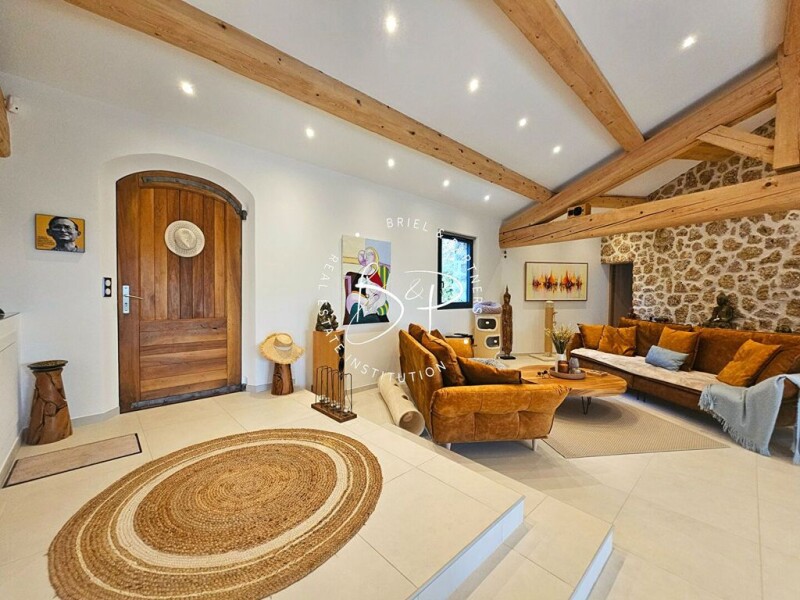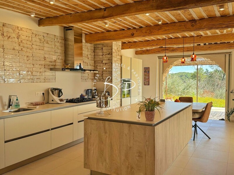 Near LORGUES, in the heart of a preserved natural setting, this sumptuous stone property of over 200 sqm, completely renovated in 2021, combines authenticity and modernity. Nestled on a 1.5 hectare estate bordered by forests and olive trees with a breathtaking view, it offers a vast, bright living room of 100 sqm with fireplace, a fitted and equipped kitchen of 30 sqm, a utility room, 4 bedrooms including 2 master suites, as well as a basement of 200 sqm fitted with an equipped gym, an office space, a wine cellar and a large garage for 6 vehicles. Outside, a 200 sqm terrace overlooks the landscape and leads to a salt-water swimming pool. High-end services: underfloor heating and cooling, central vacuum system, video surveillance, double-glazed sliding door frames, fully landscaped garden with automatic watering. A haven of peace where charm and refinement combine perfectly!.