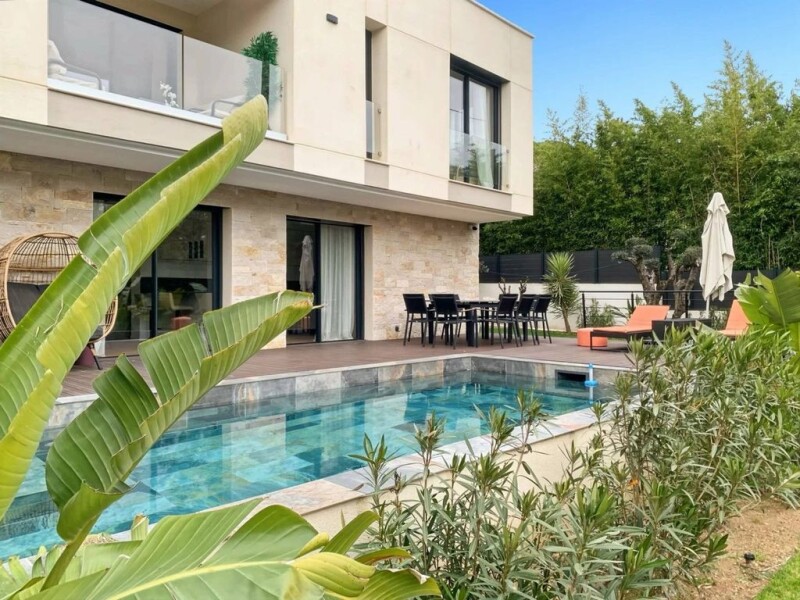 Located in a privileged setting, this magnificent new and furnished house, built in 2024 and respecting RE2020 standards, offers unparalleled comfort on a plot of 910 m². With a living space of 230 m², it benefits from an absolutely calm environment while being close to major roads and the prestigious Mougins-School. The property consists of 6 en-suite bedrooms, including 2 Master Rooms, each with private bathroom, shower and bathtub, as well as spacious dressing rooms. The bright living space includes an elegant living room with a fully equipped open kitchen, ideal for entertaining and enjoying convivial moments. Floor-to-ceiling windows offer a breathtaking view of the landscaped garden and the Bali-style swimming pool, a true oasis of serenity. In addition to high-end services, the house is equipped with home automation for simplified management of lighting, blinds and heating. You will also appreciate the two laundry rooms, one on the ground floor and the other upstairs. The carefully maintained garden is equipped with a well for irrigation, an automatic watering system and offers large parking capacity for 4 to 6 vehicles. A basement of approximately 20 m² completes the whole, offering additional storage space. This house, with a modern design and careful finishes, is ready to welcome its new owners in an exceptional living environment. Its price of 2,300,000 euros reflects the quality of its services and its ideal location. For more information and to arrange a visit, contact us without further delay.