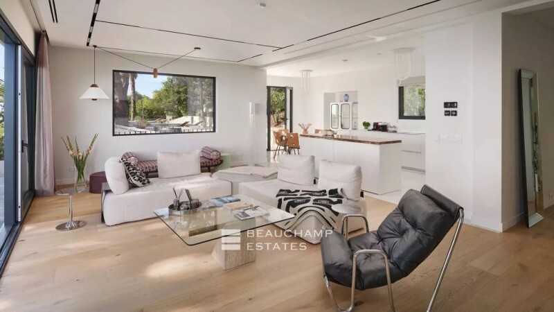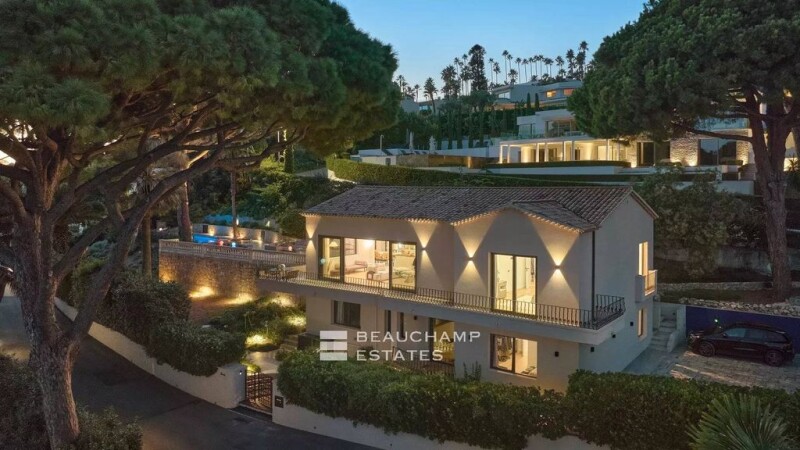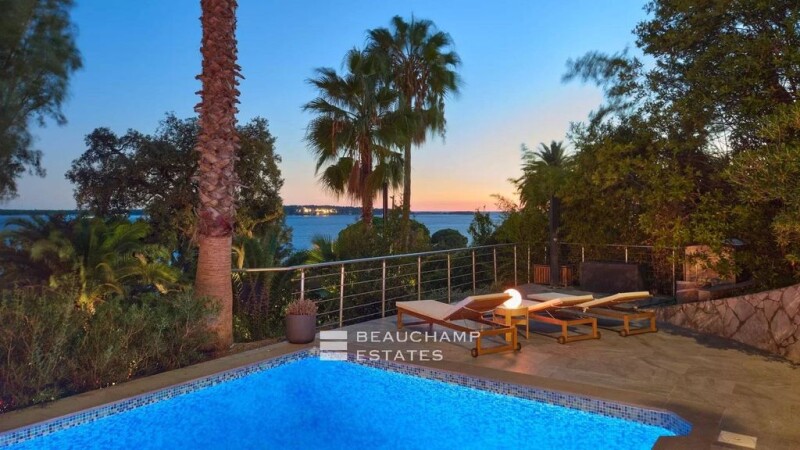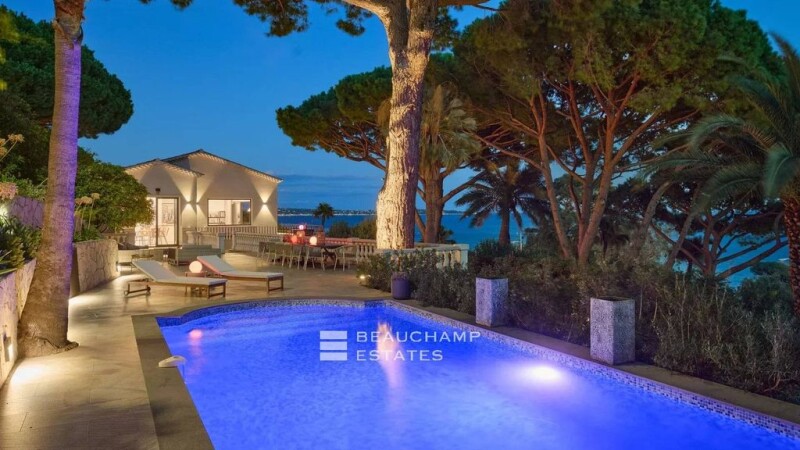 Fully renovated seaside villa, nestled within a private estate just steps away from Pointe Croisette. Located in the sought-after Basse Californie area, it offers breathtaking views of Cap d'Antibes, the Lérins Islands, and Palm Beach. On the upper floor, a bright and spacious living room, featuring a dining area and a modern open-plan kitchen. Master suite. Large bay windows provide a spectacular panorama of the Mediterranean Sea. On the ground floor, an entrance hall leads to 4 beautifully designed bedrooms and 3 bathrooms. Enjoy an idyllic setting with a heated pool, a summer lounge, and a dining area shaded by parasol pines. A true haven of peace for unforgettable moments. Parking space for up to six vehicles. Villa built in the 1950s, attributed to the Nice-based architect René Liveri. Energy class : 89KWH (B) - Climat class : 2KGC02 (A) / estimated annual costs for standard use : between 1712€ and 2316€ (ref year 2021). Information on the risk to which this property is exposed is available on the Geohazards website : www.georisques.gouv.fr.