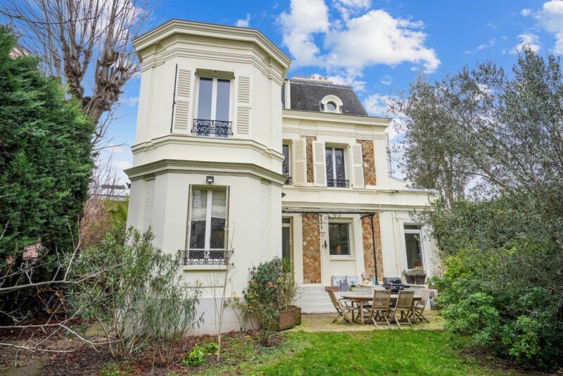 Discover this charming, stone-walled house dating from 1886, with 232 sq. m of living space + a 28 sq. m outbuilding and a 49 sq. m converted basement. It boasts a beautiful 800 sq. m garden and a 4-meter-high pavilion built during the World's Fair. This beautiful bourgeois residence is ideally located, in the Guerlain district and very close to the train station. The ground floor comprises two living rooms with fireplaces, a dining room known as "L'orangerie" with its magnificent bow window opening onto a wooded courtyard and the fully-equipped kitchen also overlooking the garden. A toilet and a bedroom or study complete the ground floor. The 1st floor features two bedrooms with fireplaces, a study, a dressing room and a bathroom with shower and toilet. On the second floor, a handsome landing leads to two bedrooms and a shower room. A basement completes this property, which also features a large room fitted out as a home cinema, a fitted laundry room and a wine cellar. Nearby Lycée Jeanne d'Arc, train station and bus station. Paris saint Lazare 10 minutes away.