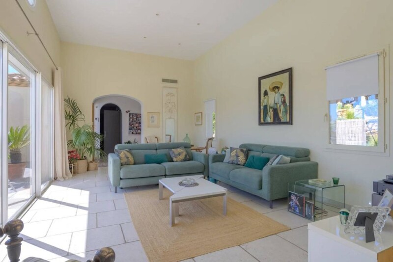 Bandol, nestled in the sought after residential area of Pierreplane, south-facing architect-designed villa with sea view, just 2 km from the town centre and 1.2 km from the beach. Built on 900 m2 of land, the house comprises a through lounge opening onto a terrace and infinity pool, a kitchen/dining room opening onto a shaded summer lounge, a utility room, a master suite with bedroom, dressing room and bathroom with spa bath and Italian shower, a bedroom with en suite shower room. Upstairs, a bedroom, a study with terrace offering panoramic sea views and a shower room. On the garden level, an independent 45 m2 apartment comprises a living room with open-plan fitted kitchen, a bedroom, a shower room with Italian shower and a terrace. Terrace of 135 m2, garage of 50 m2, 3 parking spaces and landscaped grounds. All in very good condition. The house is pleasant, comfortable and easy to live in. Contact us today to find out more.