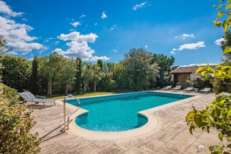 Ideally located in the heights of a sought-after neighbourhood in Saint-Rémy-de-Provence, this charming Proveníçal house enjoys absolute tranquillity on the edge of a preserved natural area. Built in the 2000's, it consists of 5 bedrooms, including one on the ground floor with its own shower room. All living areas benefit from unobstructed views on the garden and the Alpilles hills. The ground floor comprises 4 large rooms, including a living room, a dining room, and a library used as an office, opening onto flowered and shaded terraces in summer. The kitchen, with its adjoining laundry room, gives access to a covered terrace used as a summer kitchen. Upstairs, three bedrooms share a common shower room, while a fourth master bedroom has its own bathroom, dressing room, and terrace with panoramic views. The garden, adorned with flowers and Provencal essences, surrounds a large mosaic pool, inviting you to enjoy these spaces with family during the summer days. Among the other assets of this property is a large double garage with plenty of storage space. The ground floor bedroom can be converted into an office, winter lounge, or even a small independent studio. Ideal as a primary or secondary family residence, this property promises an exceptional quality of life. Contact us today to discover more.