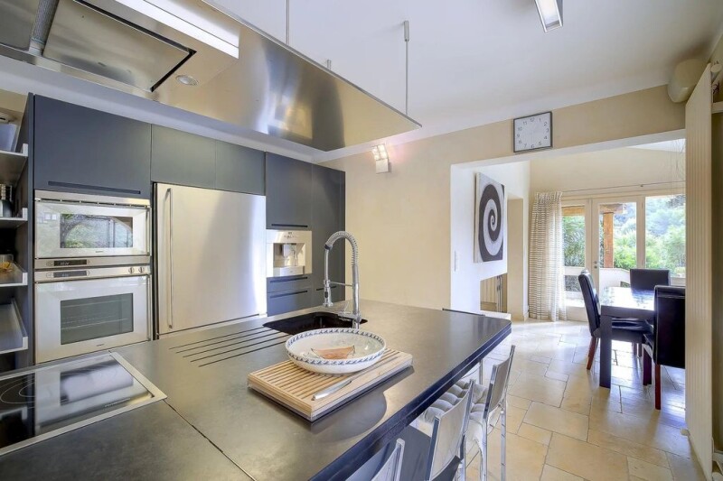 Within a small gated estate just a short walk to the village, a turn-key property offering quality appointments and refined decoration of contemporary inspiration. The ground floor features an entrance hall, a sitting and dining room with central fireplace, opening out to charming covered terraces, a superb Boffi equipped kitchen and its pantry, two en-suite bedrooms. The upper floor is dedicated to a master en-suite bedroom with study. The garden level can be considered as independent, encompassing a second kitchen, a large living-room, dining-room, two additional en-suite bedroom and storage spaces. The landscaped garden of 1,540 m2 is well maintained, enhanced with an inviting pool with overflow effect, surrounded by a charming terrace with a white roses hedge, a petanque pitch, a car port for two cars. A family property in perfect condition, very functional, ideal as a main residence or a holiday retreat. Viewing essential !.