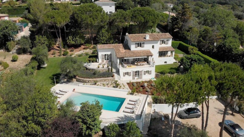 Close to Valbonne : located in a quiet, sought after residential area, a superb villa which has been completely renovated to the highest standard. South facing and benefiting from a magnificent, unobstructed view thanks to its dominant position. The main floor is home to a large living room with a fireplace, a dining room, a separate, luxuriously equipped kitchen and a guest bedroom suite. On the first floor are 3 bedrooms and 2 bathrooms. On the garden level there is a large master suite with a dressing room, bathroom and shower, a wine cellar, a sauna with shower, a laundry room, a home cinema with bar and a gym. The house sits in magnificent landscaped grounds of 2500m2 with a heated pool and parking space for several cars. Contact us today to find out more.