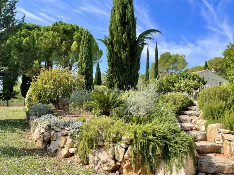 Beautiful 18th-century Provencal estate with vineyards, nestled amidst a vineyard and an olive grove, for sale in Les Arcs. This bastide offers charm and modern living comfort. The house, approximately 300 m2, features a spacious living room with a wood stove, an open-plan kitchen with a dining area, both opening onto the terrace. There is a lovely second "living"-dining room with high ceilings, a library, an office, and a utility room with laundry facilities. On the first floor, there are two spacious bedrooms. The master bedroom includes a bath and separate shower, and a walk-in closet. Bedroom 2 has a balcony and its own bathroom. In the basement, there is currently a beautiful wine cellar in a space of about 40 m2 with air conditioning, offering various usage possibilities. A peaceful setting with views of the beautiful Provencal landscape. There is a heated swimming pool that can be used year-round, a beautiful outdoor kitchen, and a boules court. A large garage accommodating three cars. The property includes approximately 3 hectares of vineyards and around one hundred olive trees.