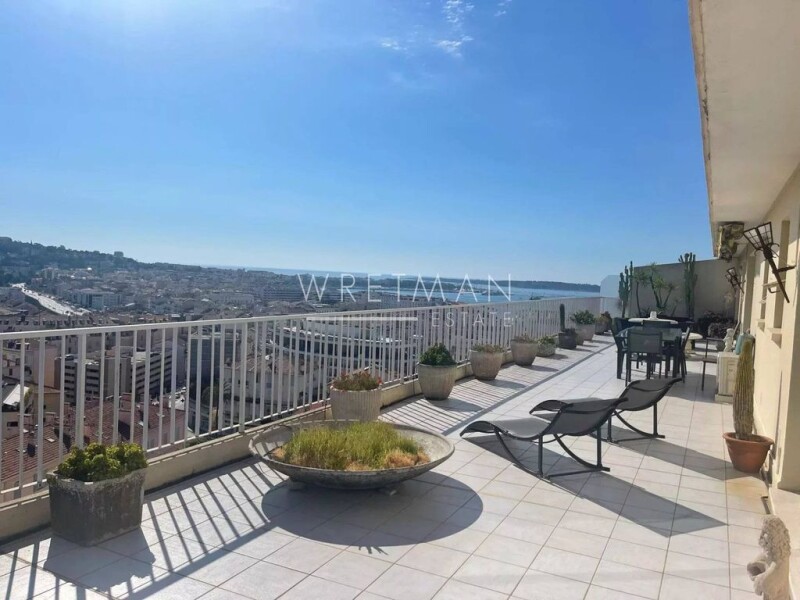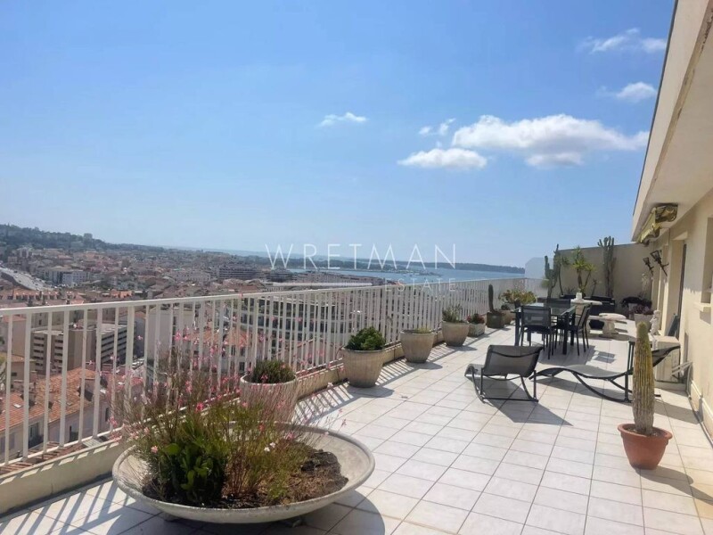 This stunning 110 m² penthouse is located on the top floor of a secure building and offers an exceptional lifestyle in the heart of Cannes. With its triple exposure, the apartment benefits from natural light throughout the day and boasts an impressive panoramic view. The large 168 m² flowered terrace is a true highlight, providing a relaxing space with beautiful views over the city and surrounding areas. All rooms open onto this terrace, creating a perfect flow between indoor and outdoor living. The apartment comprises three air-conditioned bedrooms, including a master bedroom with an en-suite bathroom. Each room is designed to offer both comfort and functionality, with a thoughtfully laid-out floor plan ensuring privacy for the residents. The building is secure, with a concierge and access badge for entry. The apartment also includes a garage and a cellar, providing additional storage space and convenient parking. The location is truly ideal. The pharmacy is just 2 minutes on foot, and shops are only 5 minutes away. The beaches of Cannes and the famous Croisette are also only 5 minutes away. Both the SNCF train station and the bus station are 5 minutes away, making it easy to travel to other destinations. The charming area of Le Suquet and the Forville market are just a 5-minute walk away, and the luxury shopping street Rue d'Antibes is also only 5 minutes away. This apartment offers not only a modern and spacious lifestyle but also a privileged location, just steps away from all the best attractions in Cannes. État des risques et pollution: réalisé (null).