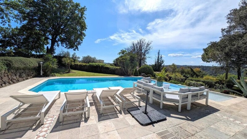 Within walking distance to the old town, in a peaceful area, a charming Provençal style house with a beautiful landscaped garden with a large swimming pool, enjoying open views all around. A large living room, dining room, and kitchen, all opening on the terraces or garden. Four bedrooms, all with ensuite bathrooms and closets, plus others rooms used as playroom or office. One of the bedrooms, also a kitchen and an Independent access, can be used as Independent apartment. Garage for two car and large backyard where is possible to park others cars, plus and outside private parking space for two more cars. État des risques et pollution: réalisé (2024-04-26).