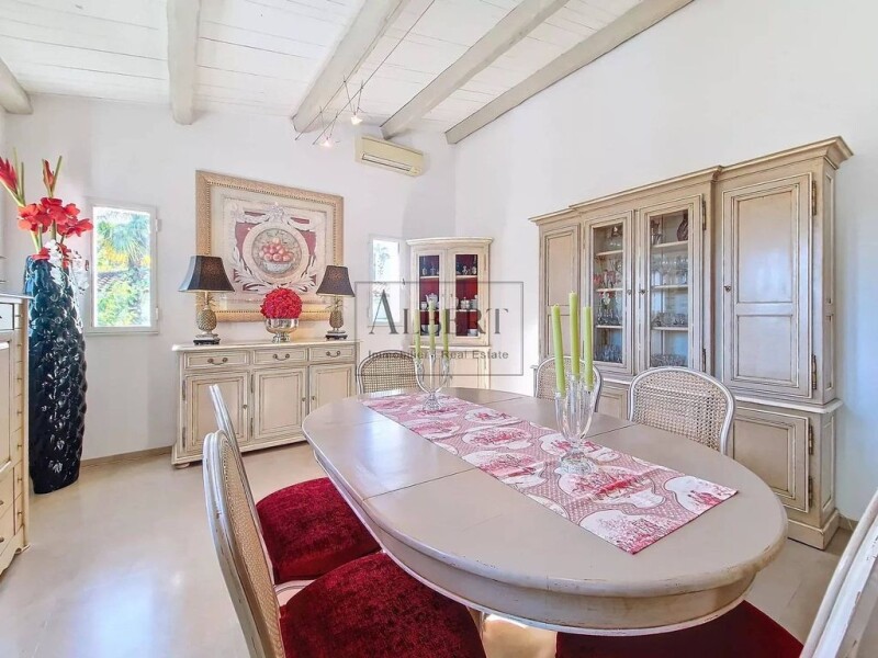 This elegant contemporary independent villa of 229 m2 of living space awaits you on a flat and wooded plot of 1,134 m 2, with a heated infinity pool, a pool house/ gym and a relaxation area. Sought-after area of Basse Californie/ Montfleury just 10 minutes walk from the city center and shops Come and discover this beautiful house! Spread over three half levels, the villa has on the ground floor two bedrooms with bathrooms and private toilets. On the first half level, a large kitchen opens onto an outdoor dining area with barbecue, accompanied by two other bedrooms with bathrooms, a laundry room and a dressing room. The second half level offers a large living room of 45 m2 with fireplace, extended by a bright veranda lounge and terrace. You will also find a living room/ office of 27 m2 and a master suite of 21.47 m2 with dressing room and en-suite bathroom. A property that combines comfort, modernity and refinement in a privileged living environment.