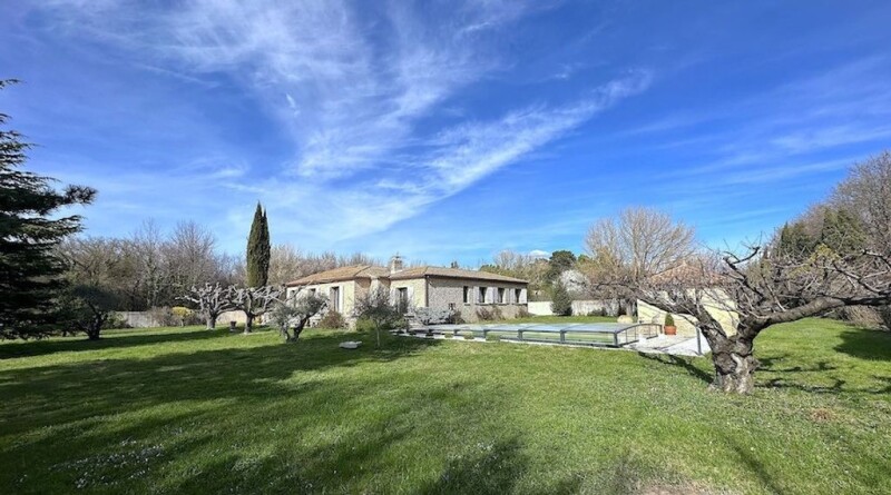 Located in the countryside of Carpentras, facing south, beautiful single storey villa built in 1986 of about 230m2 in a fully enclosed garden of 3,500m2 with a swimming pool. This charming stone house consists of rooms with beautiful volumes, bright and pleasant. A large living room with a fireplace, a sublime patio of 16 m2 that opens to the open air and increases the light tenfold, a kitchen, three beautiful bedrooms and two bathrooms, one with shower. Quality services: Many closets, garage and carport, wine cellar, laundry room, central heating, automatic watering, reversible air conditioning, fiber, intercom, electric gate, double glazing, crawl space, septic tank. This villa benefits from mains water as well as the Carpentras canal for the exteriors.