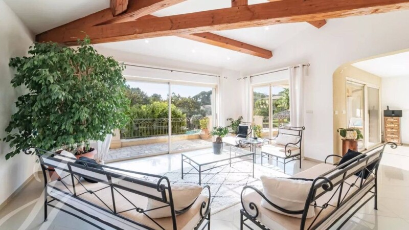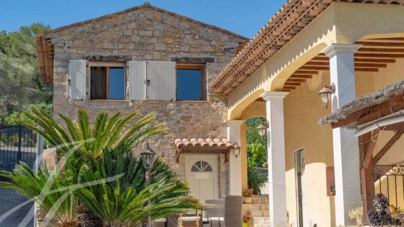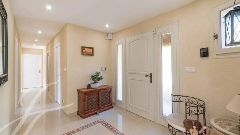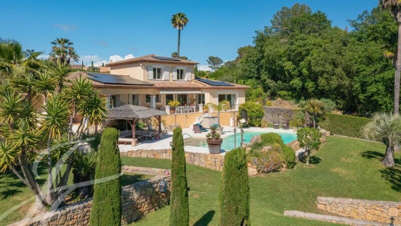 In a quiet ant residential area close to Cannes sized on a landscaped land of 2,445 sq.m with heated swimming pool. Built in 2005 with a total surface of 380sqm and offering superb volumes all south / south - ouest facing with a 95 sq.m living room, 4 bedrooms and 2 bathrooms. An independent stone house with bedroom and bathroom, a double garage and a large basement of approx. 100 sq.m that could be used as a sports/games/cinema room, wine cellar and cellar complete this villa.